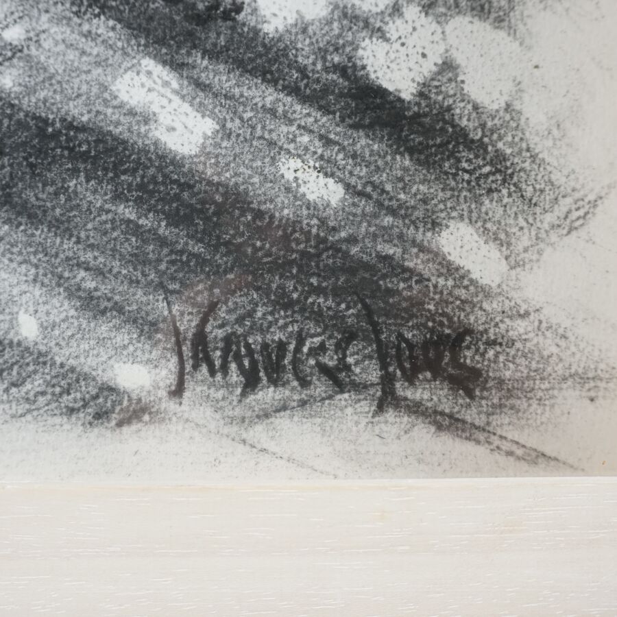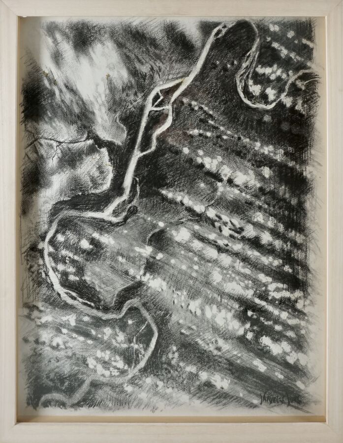Jacques JOOS (1945-2021), "Composition", 1990, fusain sur papier, signée en bas à droite, 63 x 48 cm (à vue).