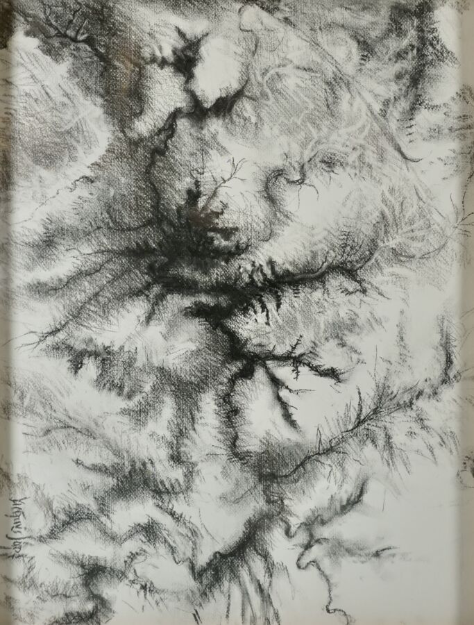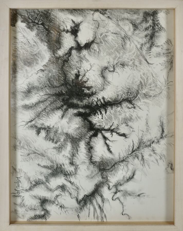 Jacques JOOS (1945-2021), "Composition", fusain sur papier, signé en bas à droite, 48,5 x 63,5 cm.
