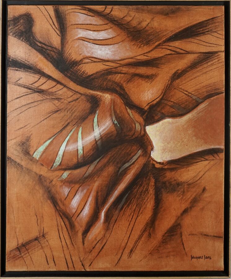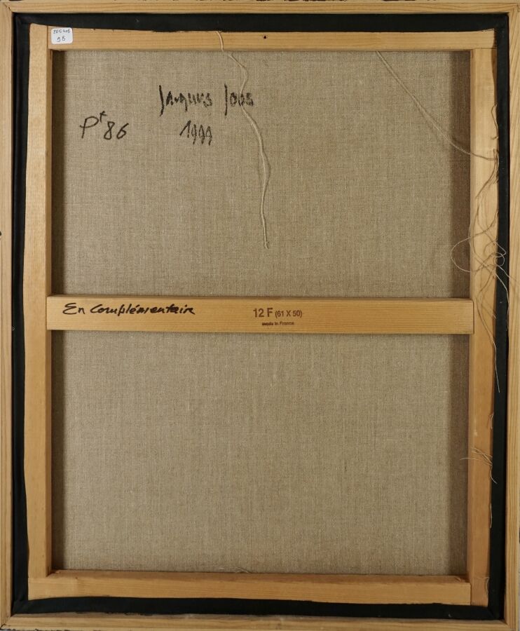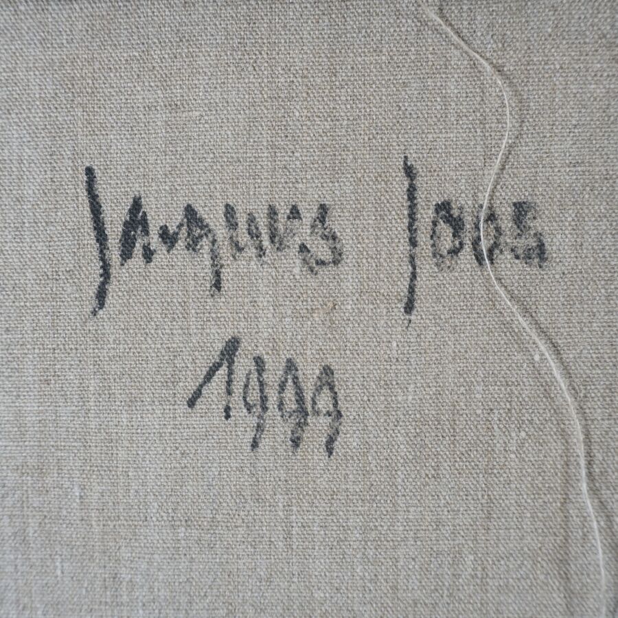 Jacques JOOS (1945-2021), "Composition orange et verte", 1999, technique mixte sur toile, signée en bas à droite, signée et datée au dos, 61 x 50 cm.