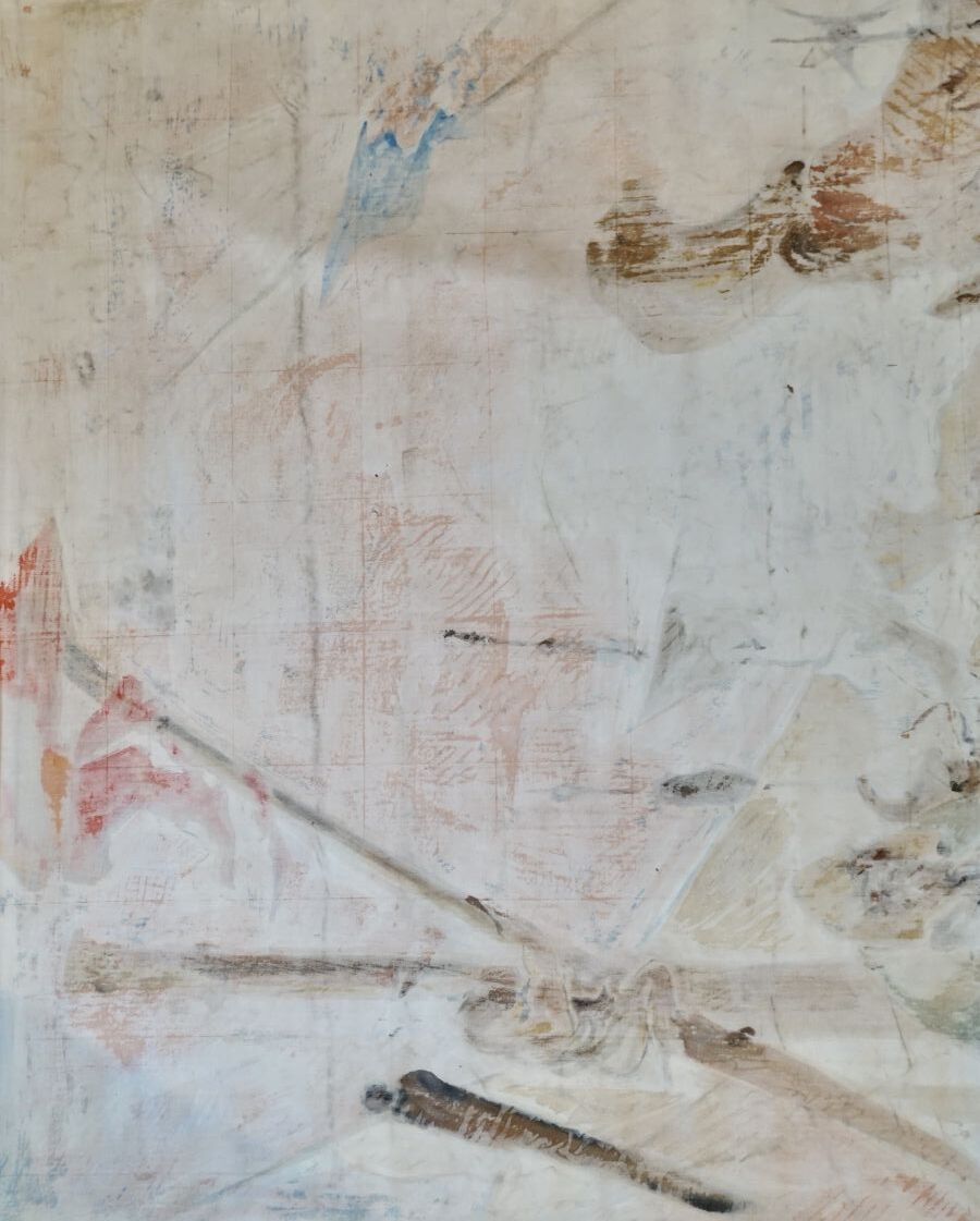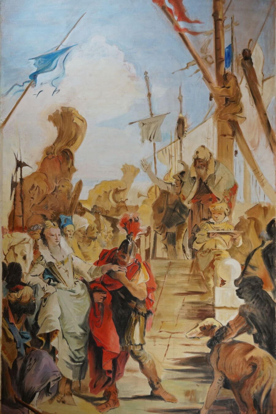Jacques JOOS (1945-2021), "Débarquement de la reine à Marseille, d'après Pierre Paul Rubens", acrylique sur toile, signée en bas à droite, 355 x 217 cm.