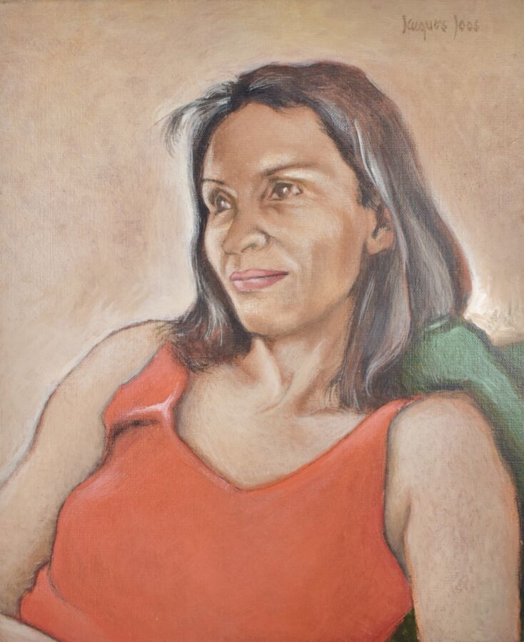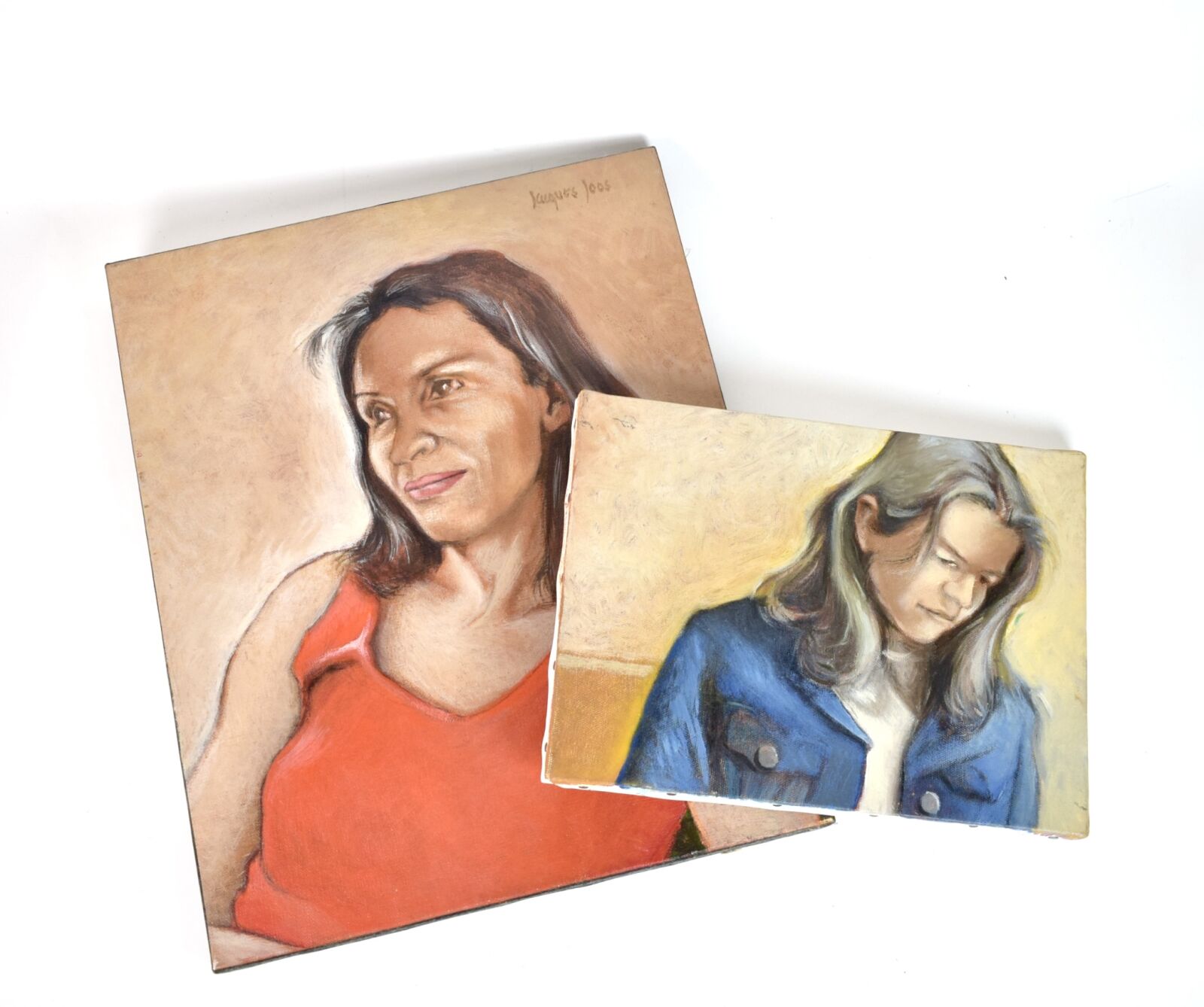 Jacques JOOS (1945-2021), "Deux portraits de femme" , acrylique sur toile, dont une signée en haut à droite, 24 x 33 cm et 46 x 38 cm