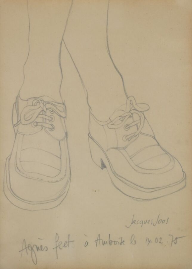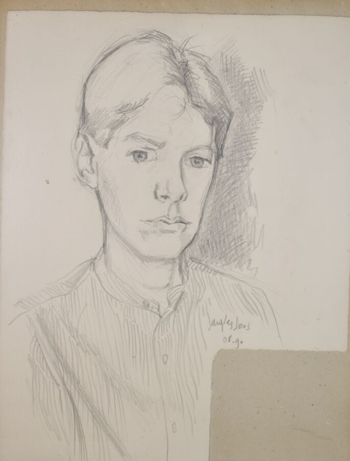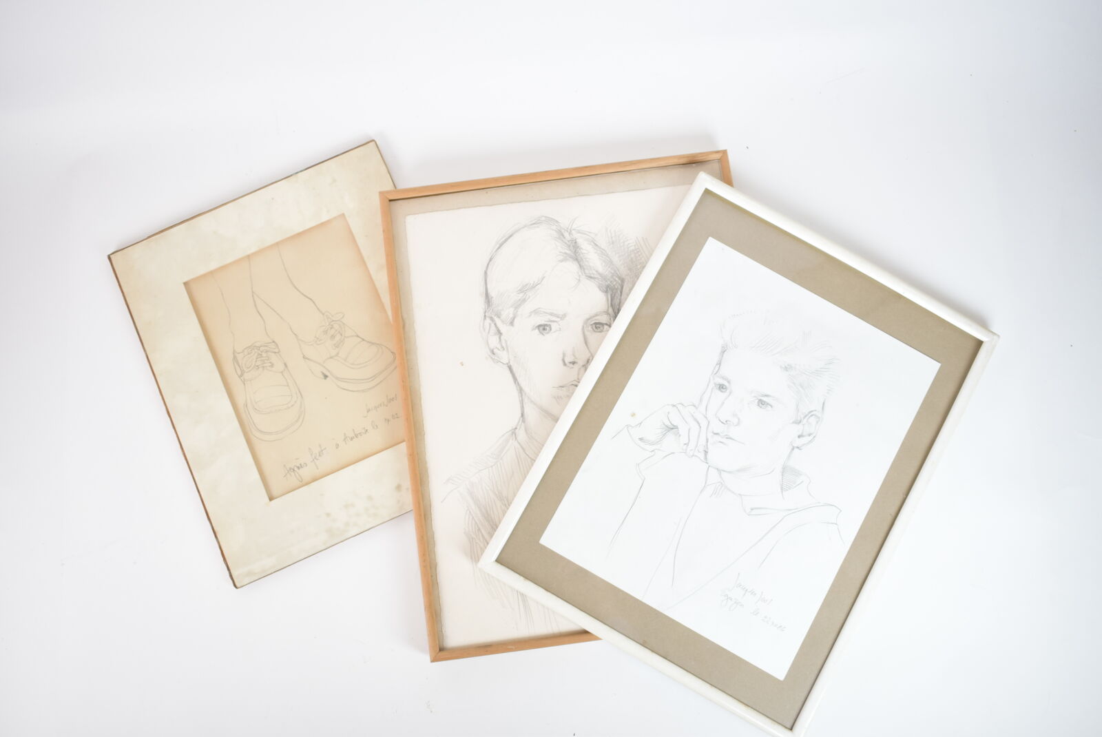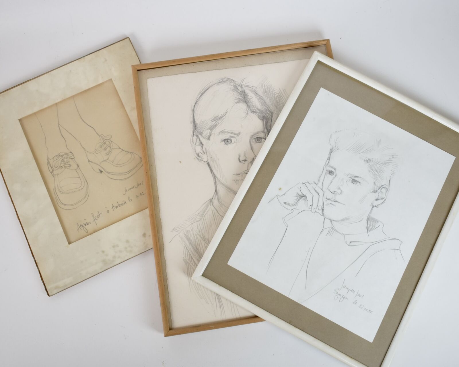 Jacques JOOS (1945-2021), Ensemble de deux portraits et d'une étude de pieds, crayon sur papier, signés et datés en bas à droite 23 à 40 x 16 à 29, (à vue), (légères déchirures et rousseurs).