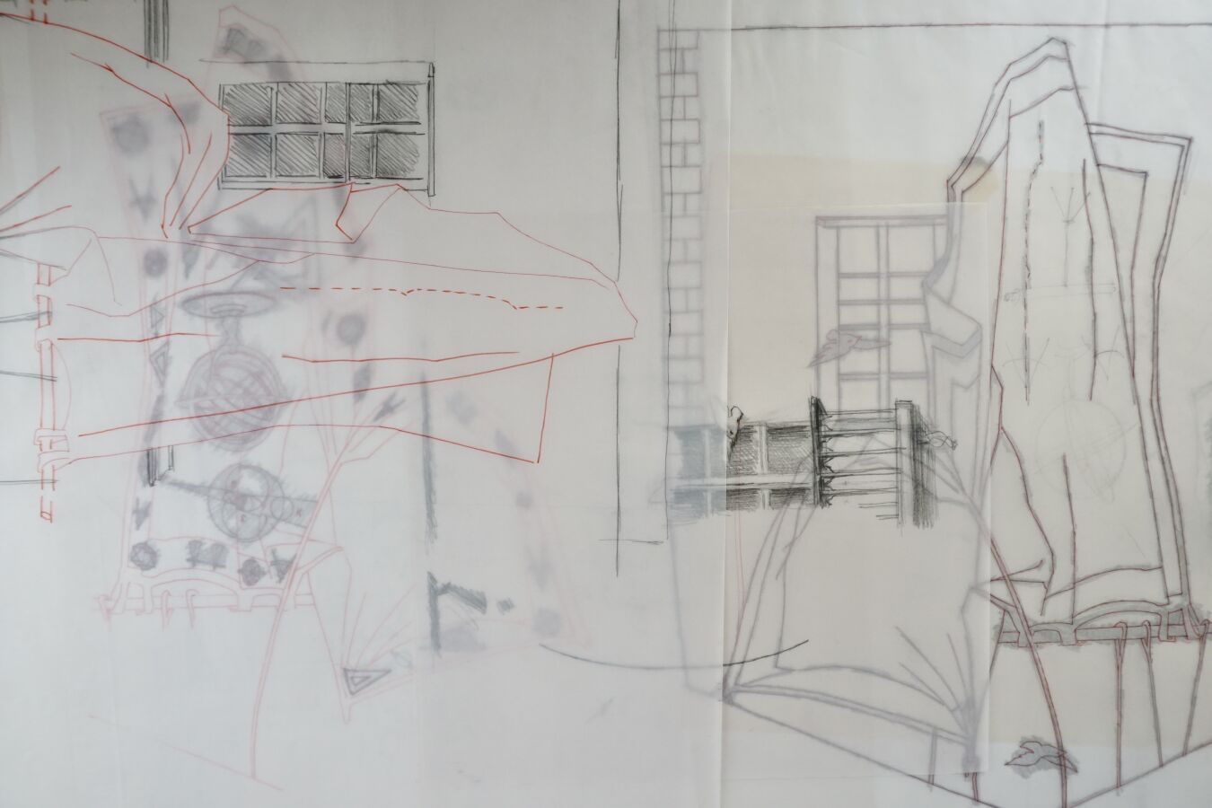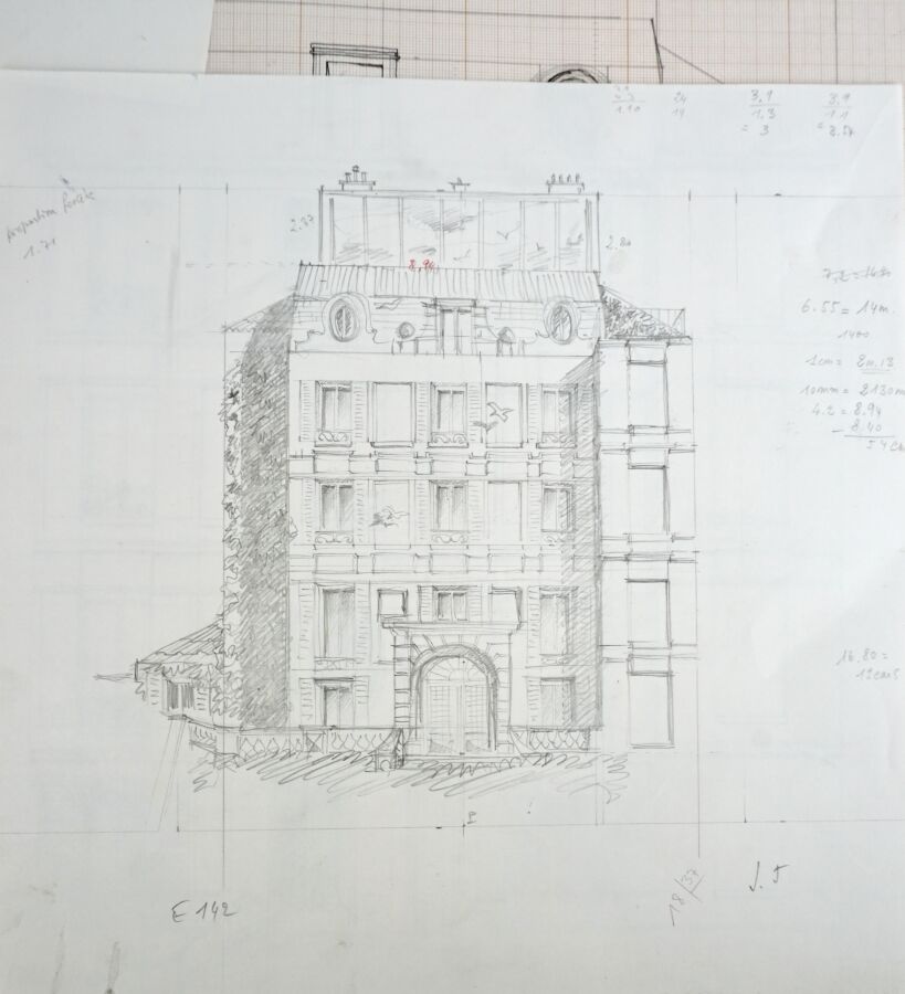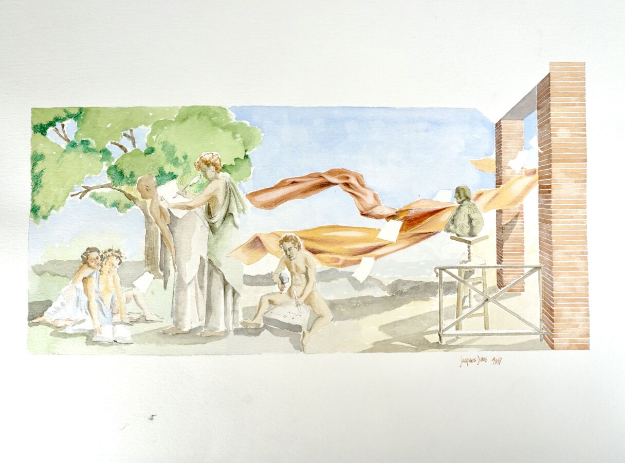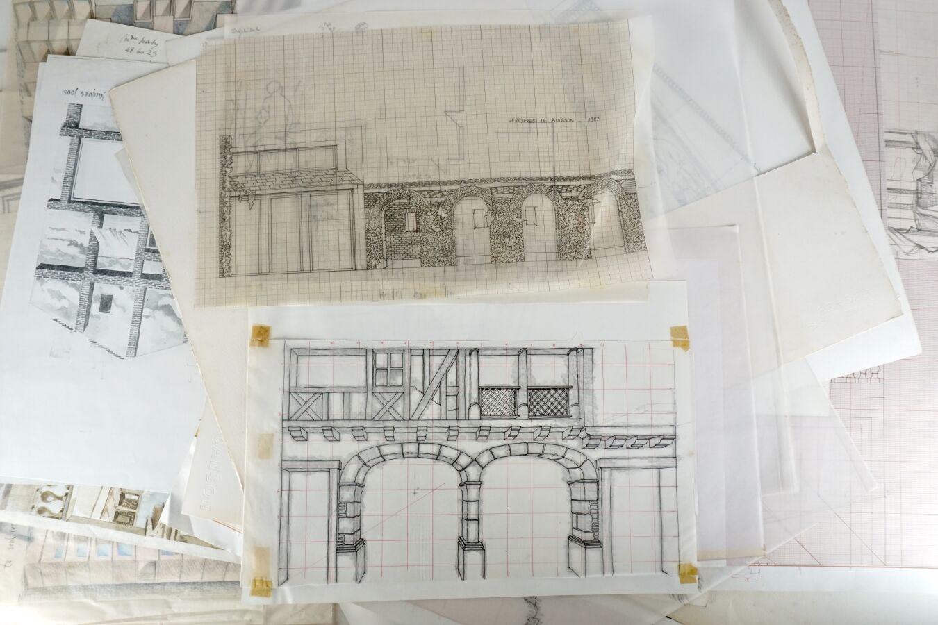Jacques JOOS (1945-2021), ensemble d'environ une centaine de dessins, aquarelles, découpages, calques et impressions, notamment autour du projet de restauration de la cathédrale Saint Etienne de Cahors (1987-1988) et divers, certains dessins signés, titrés et datés, format divers.