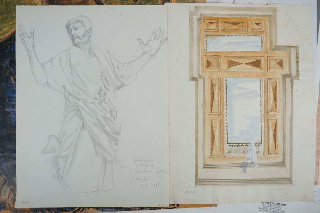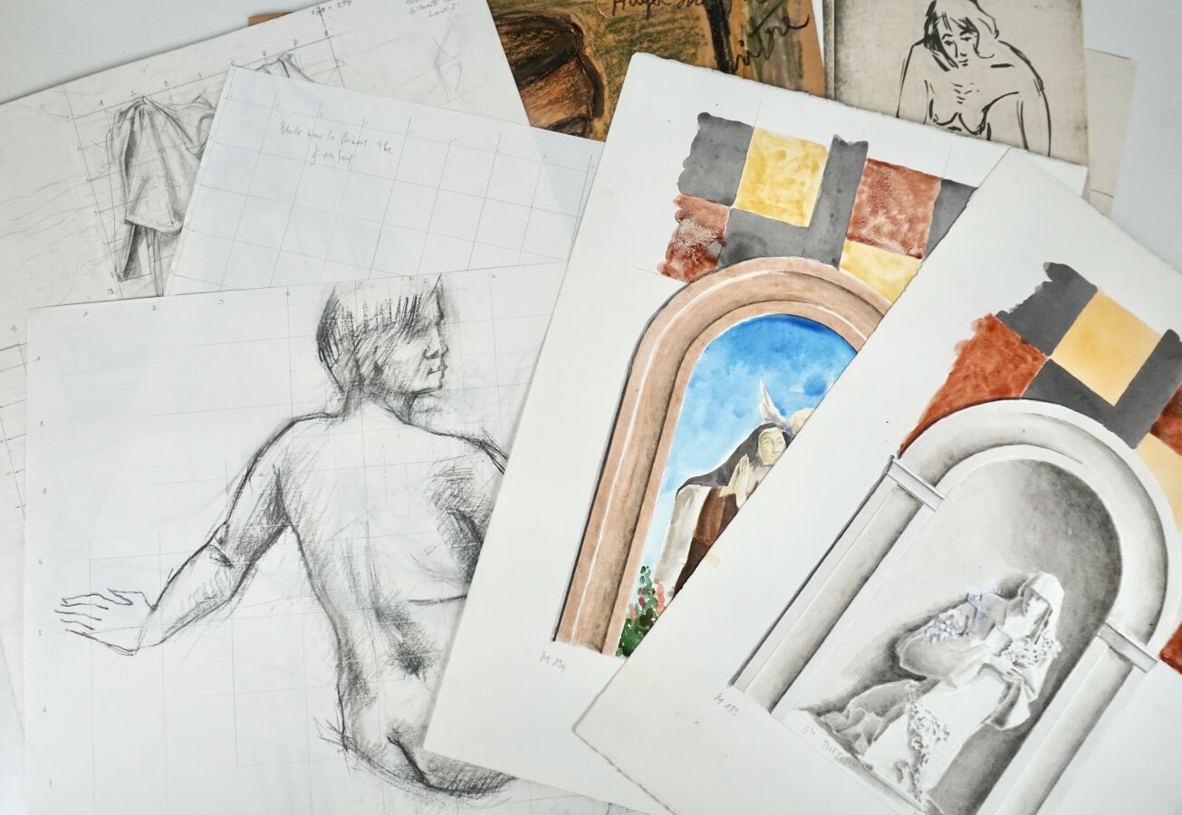 Jacques JOOS (1945-2021), ensemble d'environ une quarantaine de dessins, pastels, aquarelles, lithographies, fusains, d'études diverses, de portraits, de nues et de projets, certains dessins signés, titrés et datés, formats divers.