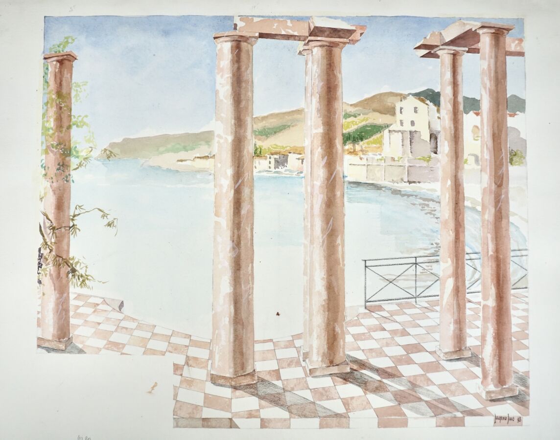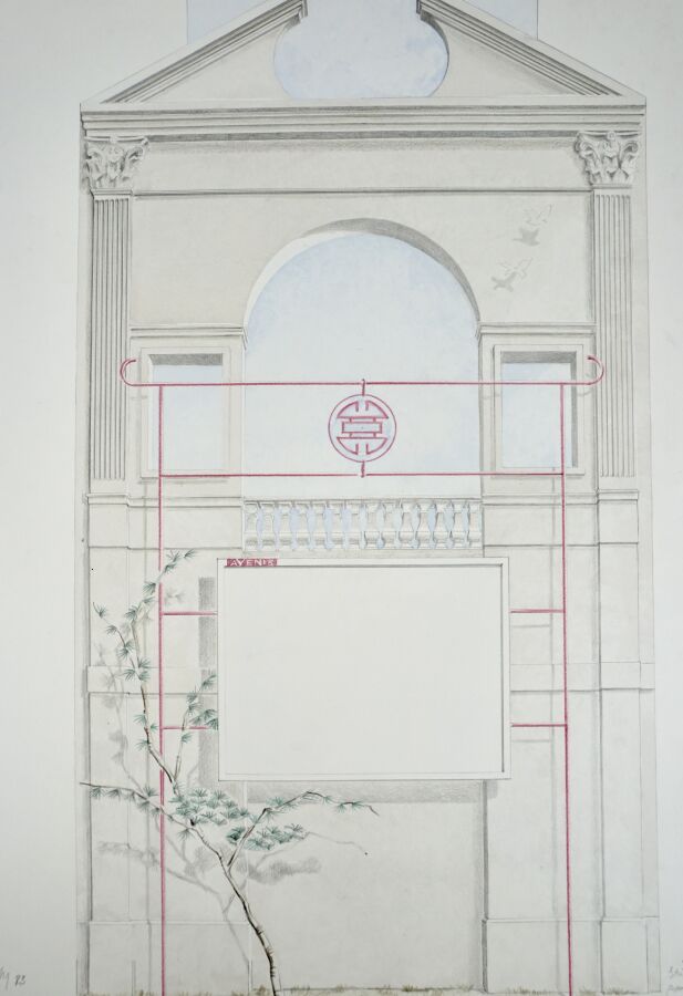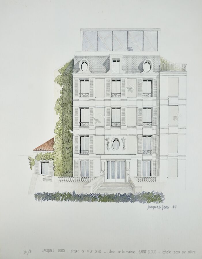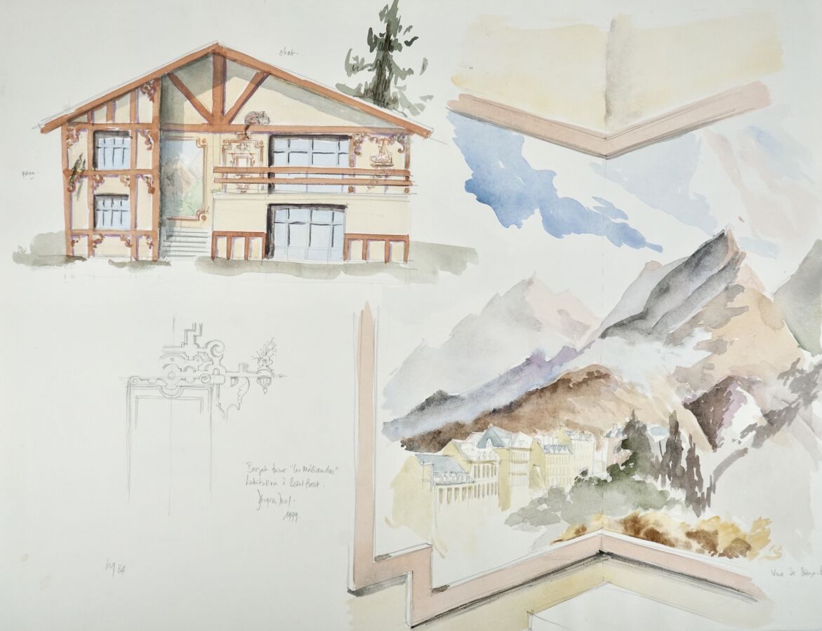 Jacques JOOS (1945-2021), ensemble d'environ une trentaine de dessins, aquarelles, et pastels principalement de projets architecturaux, formats divers allant de 55 x 75 cm pour les plus grands.