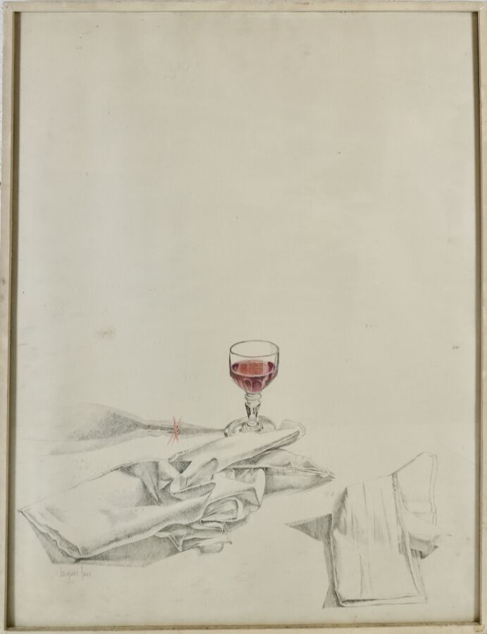 Jacques JOOS (1945-2021), "Etude au verre de vin", crayon sur papier, signé en bas à gauche, 64,5 x 49,5 cm.