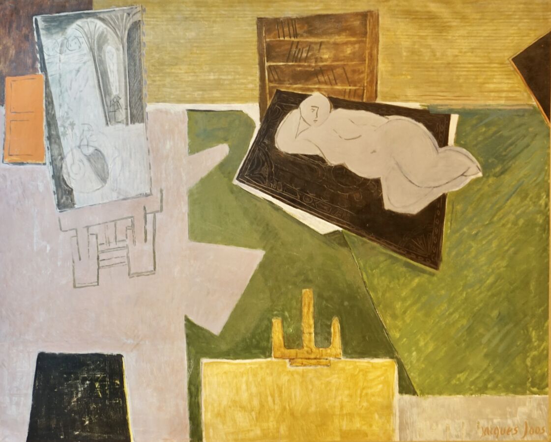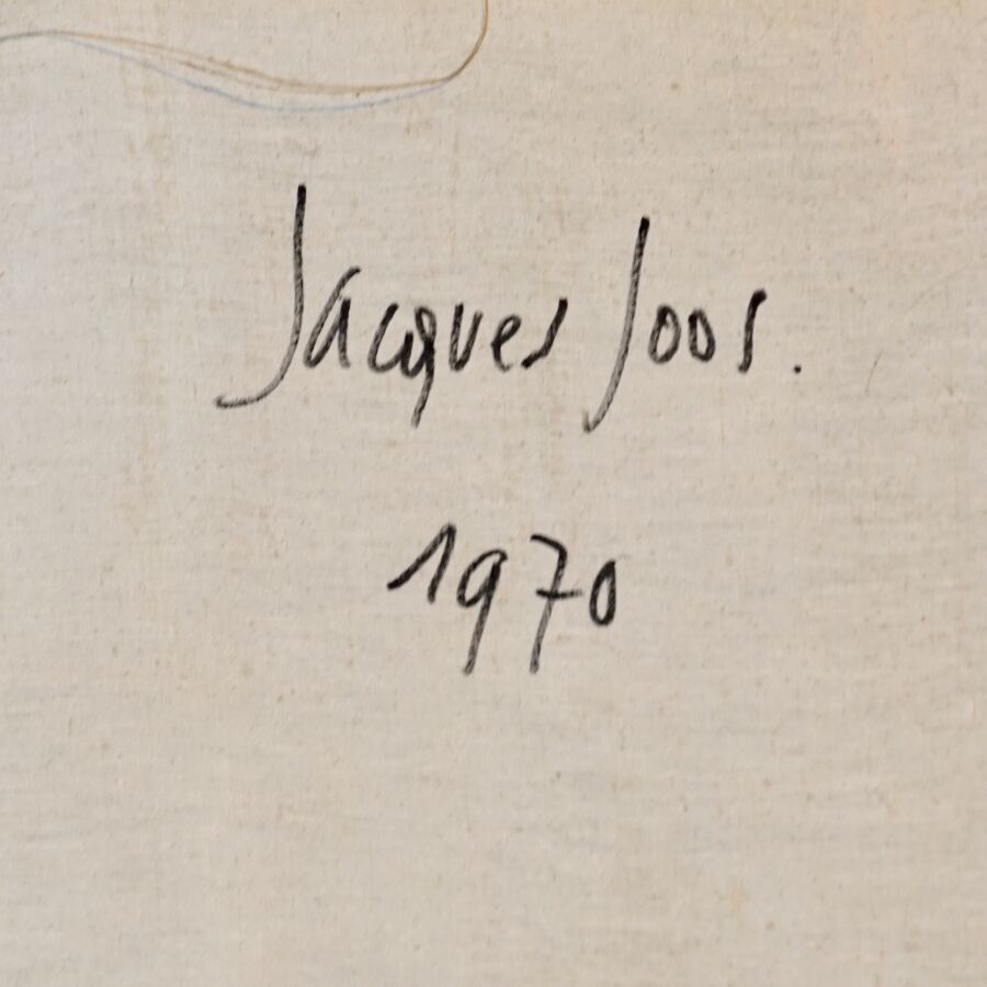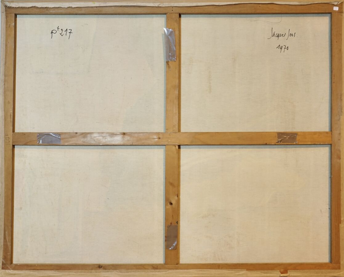 Jacques JOOS (1945-2021), " Étude de nu " 1970, technique mixte sur toile, signée en bas à droite, signée et datée au dos, 131 x 161 cm.