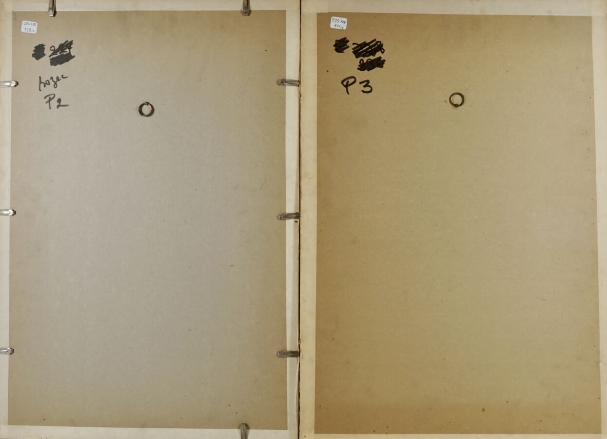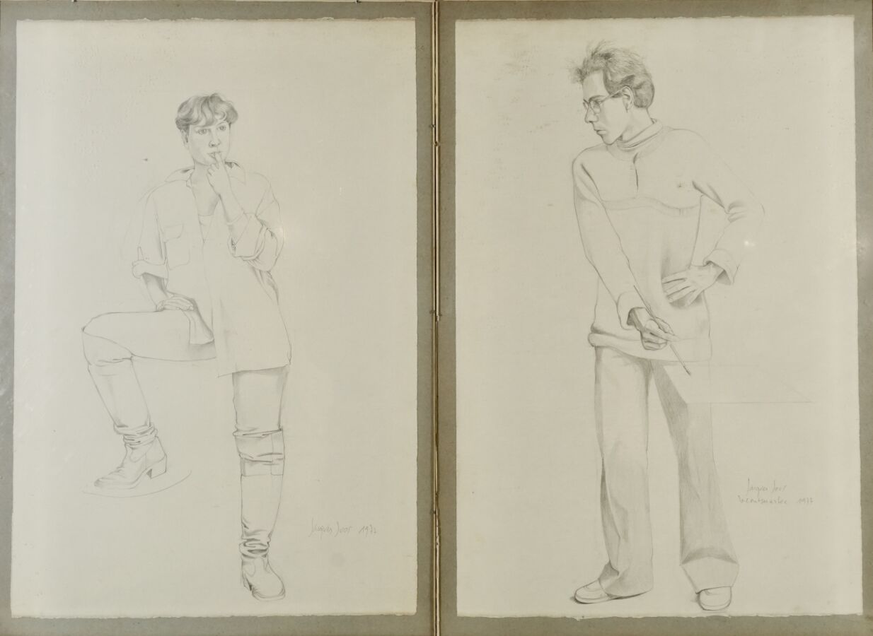 Jacques JOOS (1945-2021), "Etude de portrait en pieds", 1977, quatre crayons sur papier, signés en bas à droite, 57 x 38 cm.