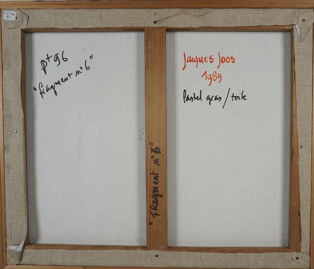 Jacques JOOS (1945-2021), "Fragment n°6", 1989, pastel gras, signé en bas à droite, signé, titré et daté au dos, 46 x 55 cm.