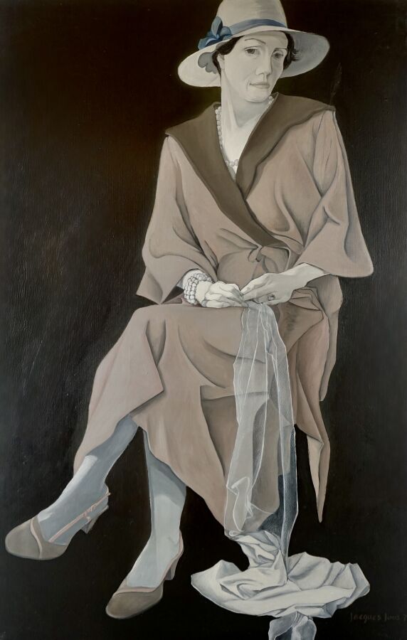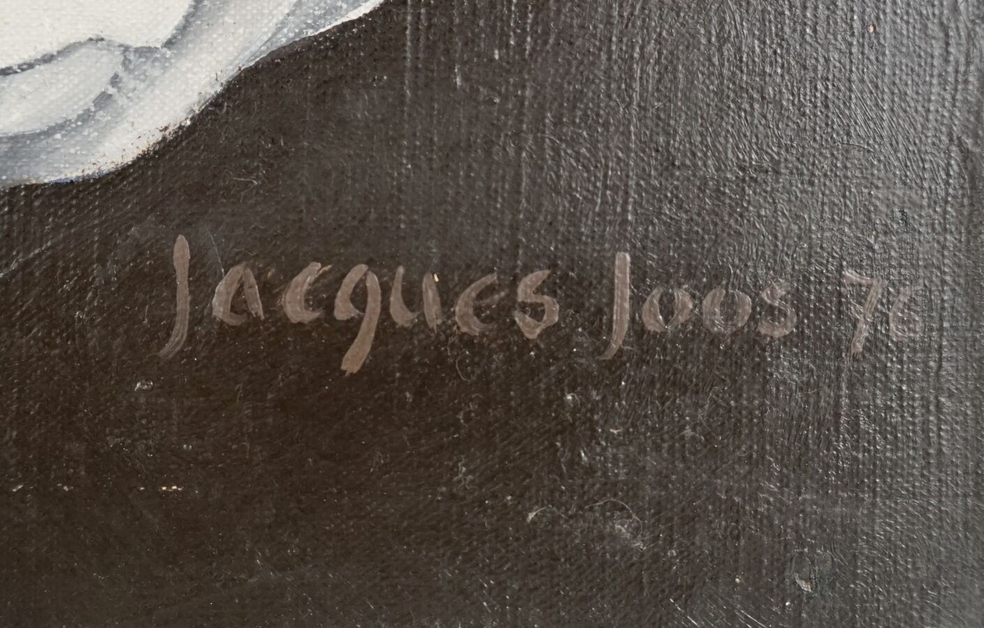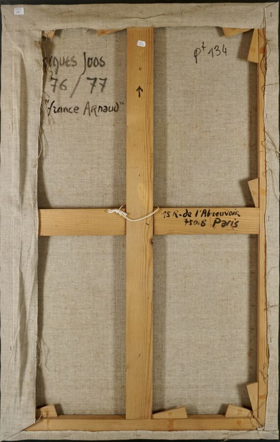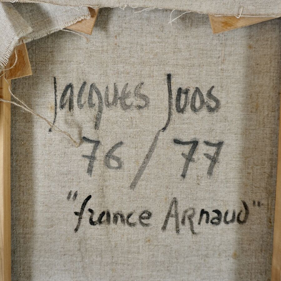 Jacques JOOS (1945-2021), "France Arnaud", 1976-1977, technique mixte sur toile, signée en bas à droite, signée, située, titrée et datée au dos, 100 x 65 cm.