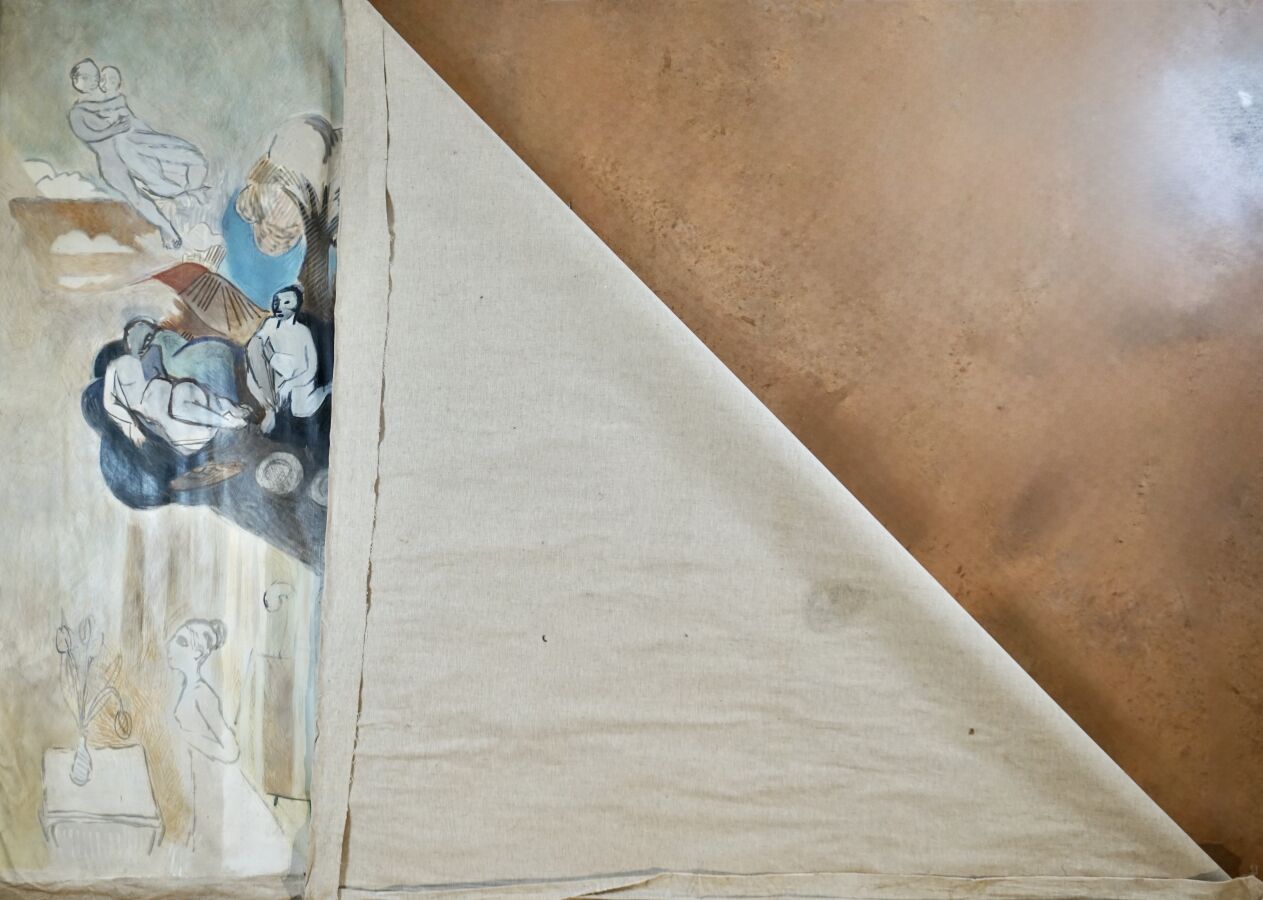 Jacques JOOS (1945-2021), "Imaginaire et vie parisienne", circa 1975, technique mixte sur toile, non enchâssée, 211,5 x 303 cm. (tâches d'humidités)