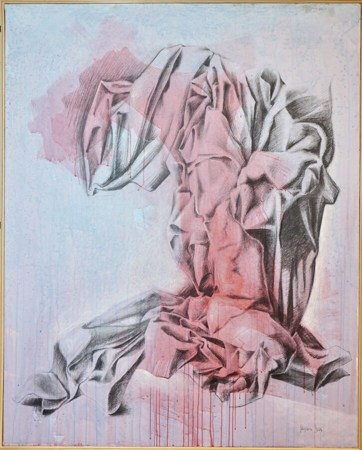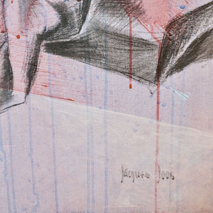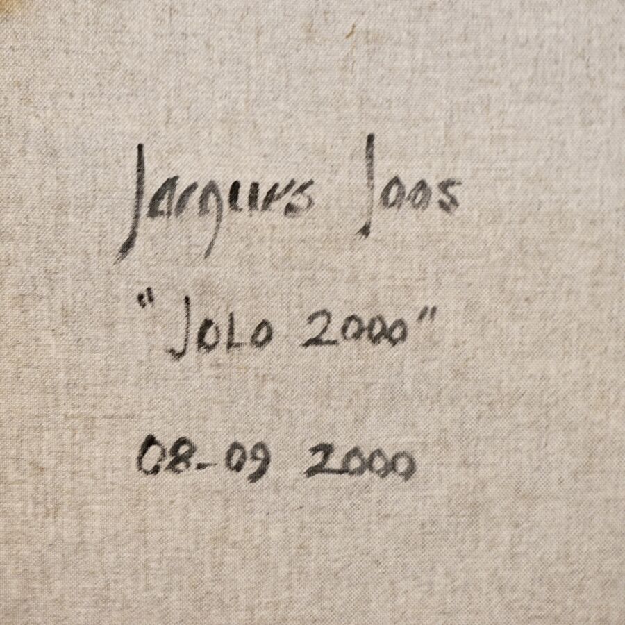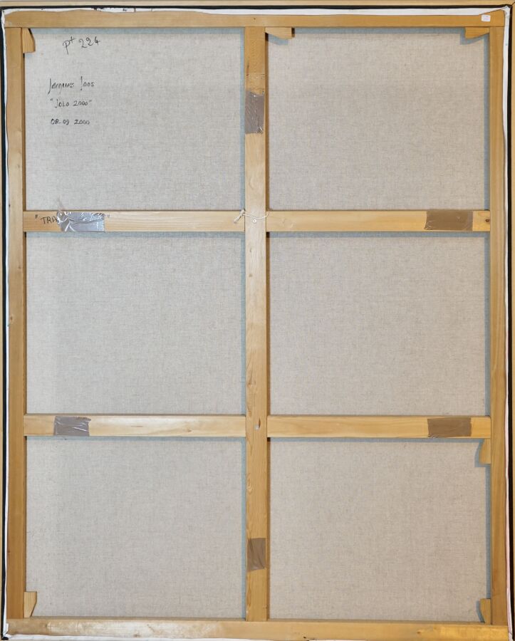 Jacques JOOS (1945-2021), " Jolo 2000 " 2000, technique mixte sur toile, signée en bas à droite, signée, titrée et datée au dos, 161 x 131 cm.