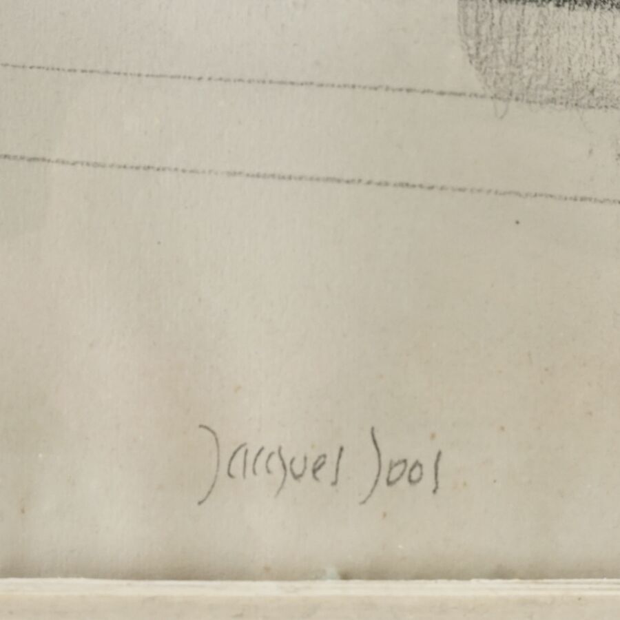 Jacques JOOS (1945-2021), "La boule de cristal", crayon sur papier, signé en bas au centre à droite, 64,5 x 49,5 cm.