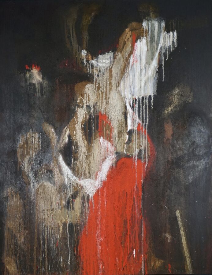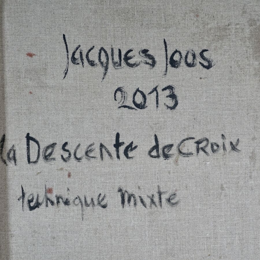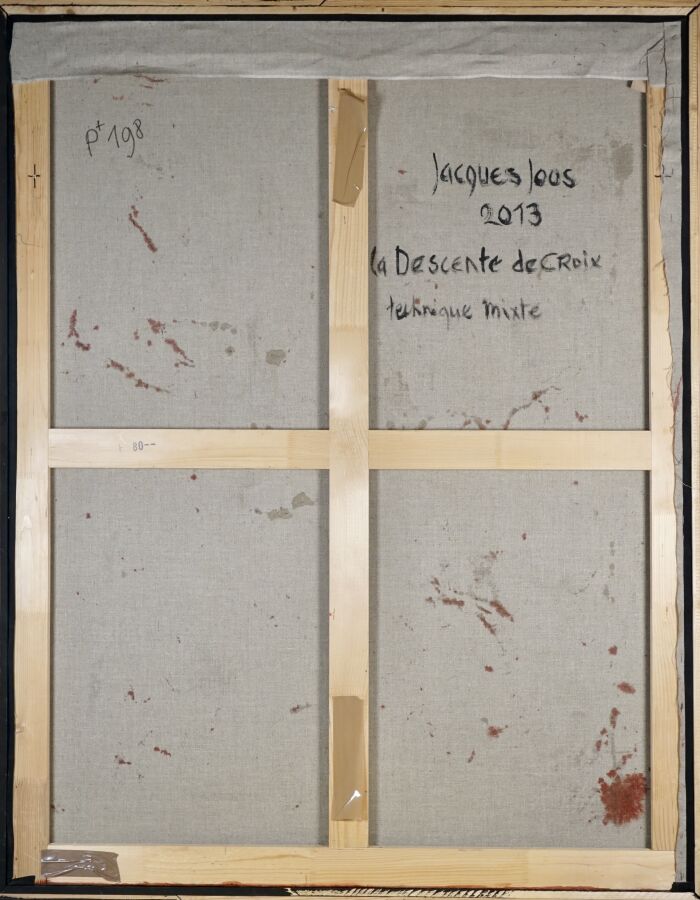 Jacques JOOS (1945-2021), "La descente de croix d'après Pierre-Paul Rubens", 2013, technique mixte sur toile, signée, titrée et datée au dos, 147.5 x 114 cm.