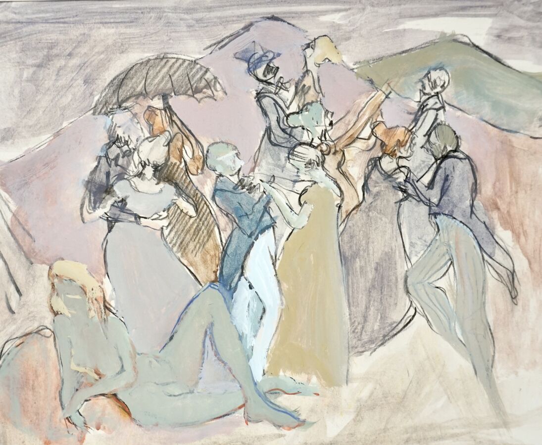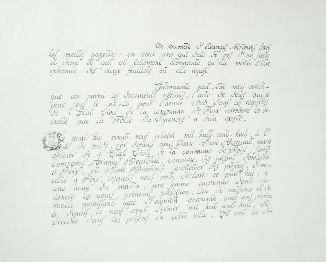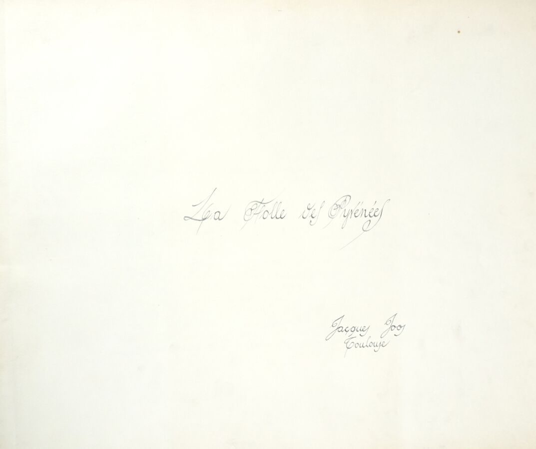 Jacques JOOS (1945-2021), "La folle des Pyrénées", livre manuscrits illustré de douze gouache sur papier, dans son carton, 42 x 50 cm (rousseurs, tâches d'humidités).