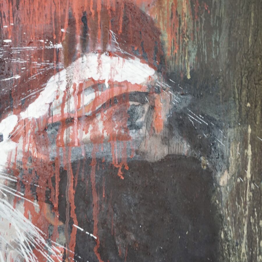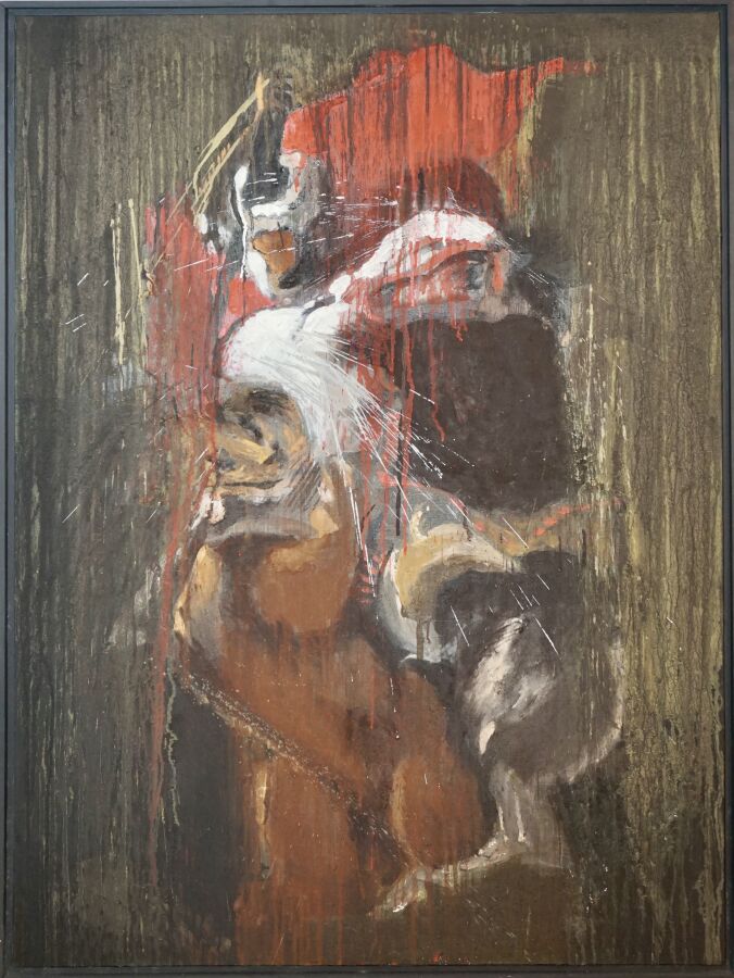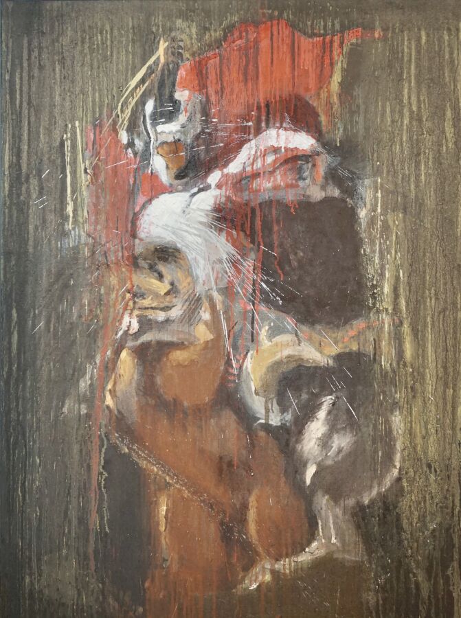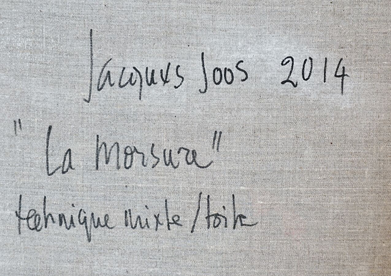 Jacques JOOS (1945-2021), " La morsure " 2014, technique mixte sur toile, signée, titrée, datée au dos, 130 x 96,5 cm.