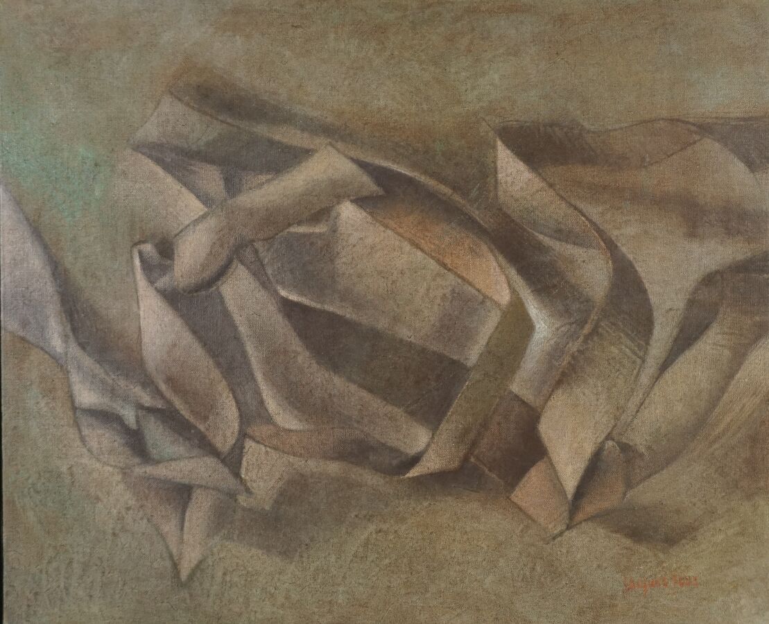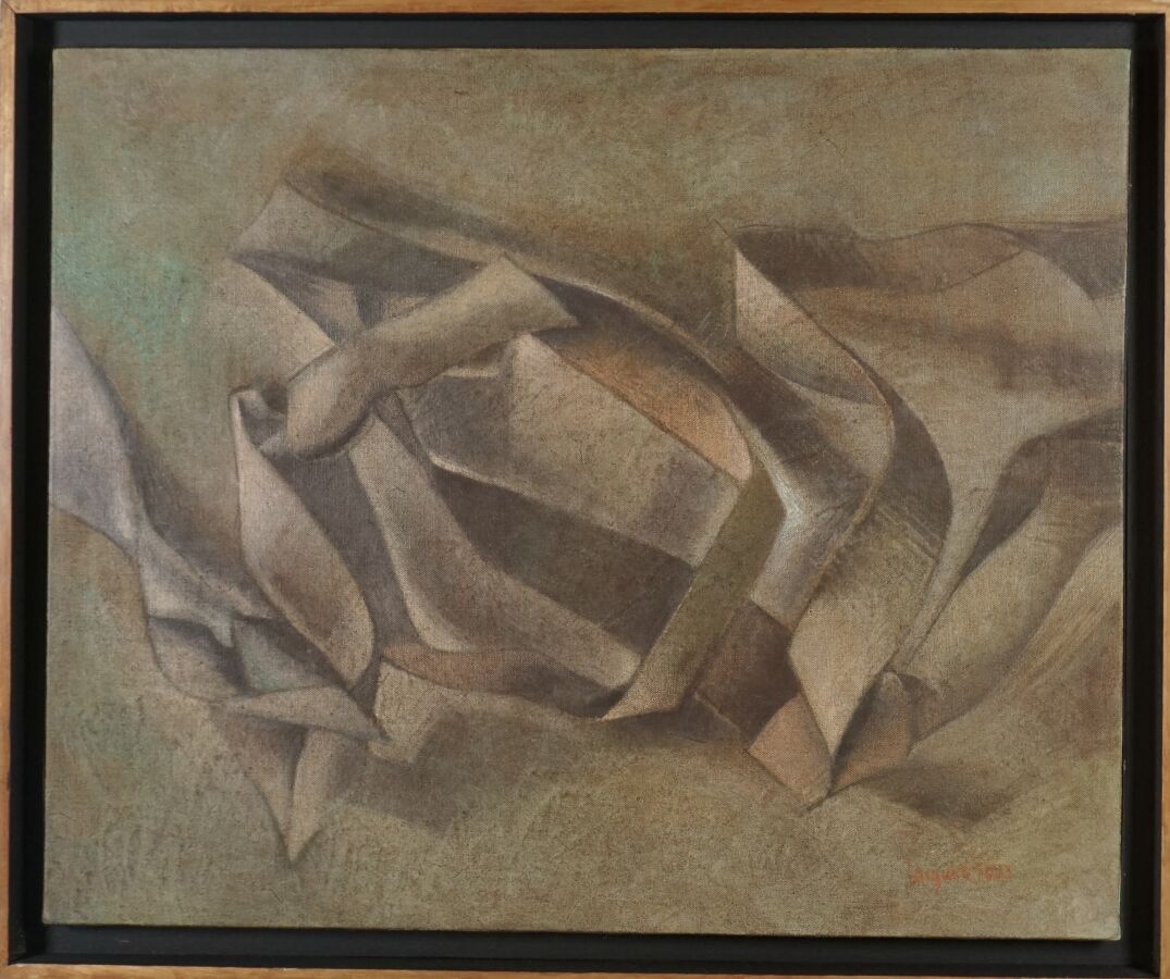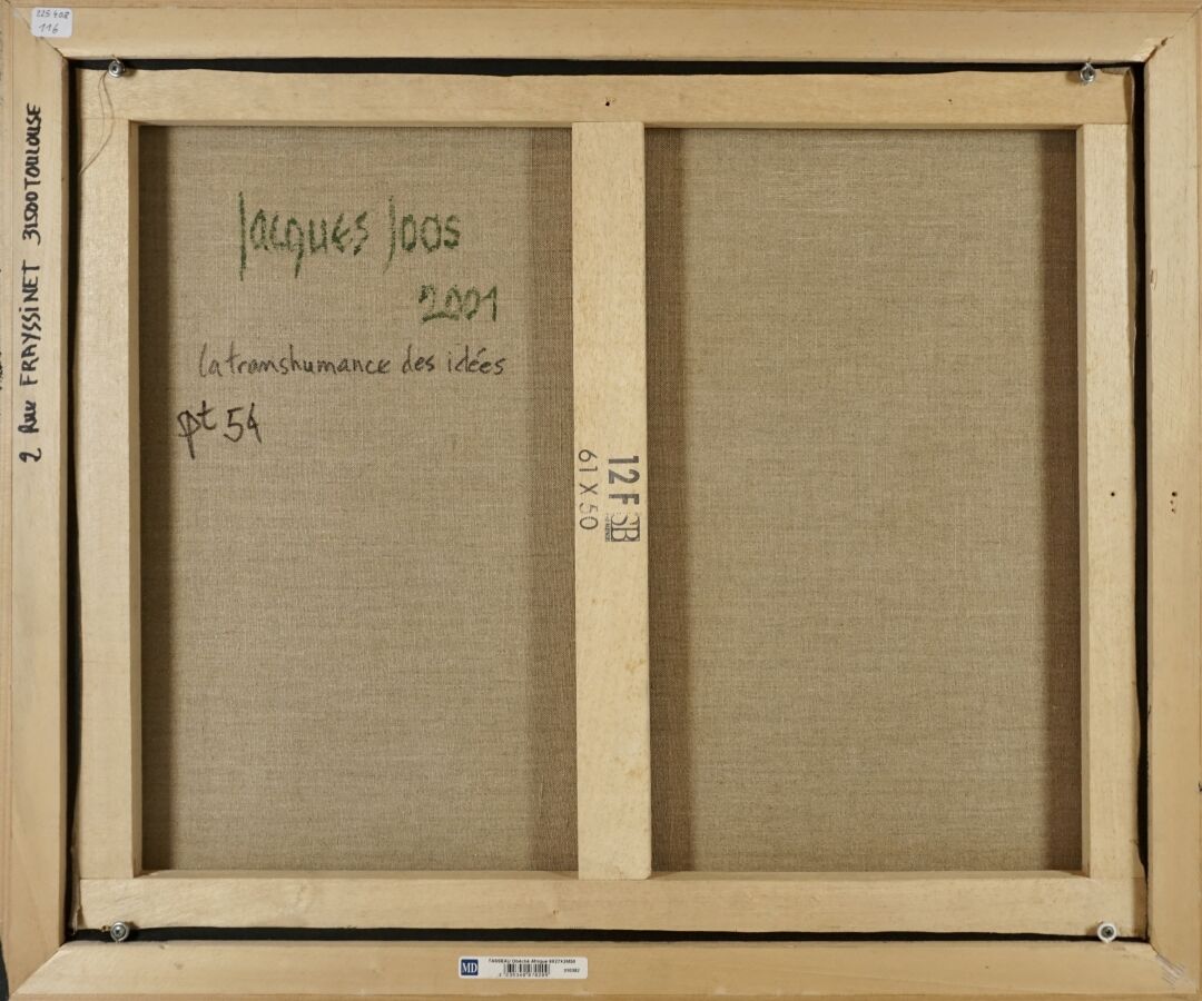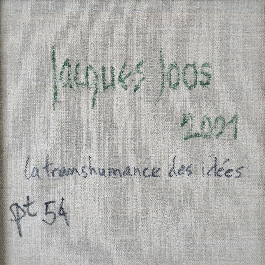 Jacques JOOS (1945-2021), "La transhumance des idées", 2001, technique mixte sur toile, signée en bas à droite, signée, titrée et datée au dos, 50 x 61 cm.