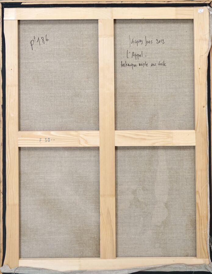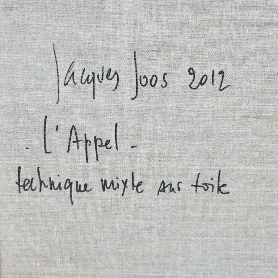 Jacques JOOS (1945-2021), « L'appel », 2012, technique mixte sur toile, datée et titrée au dos, 115 x 87.5 cm.