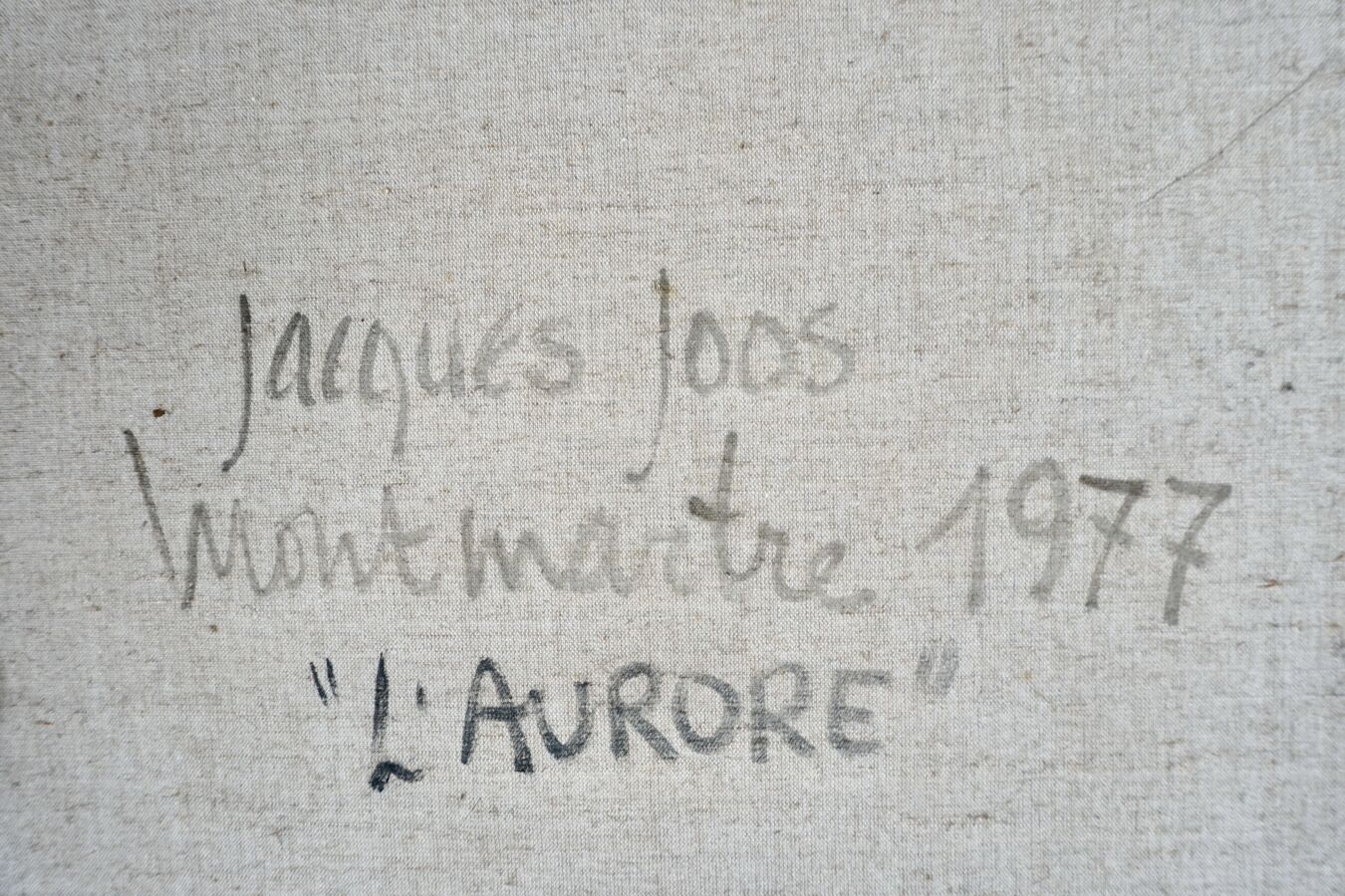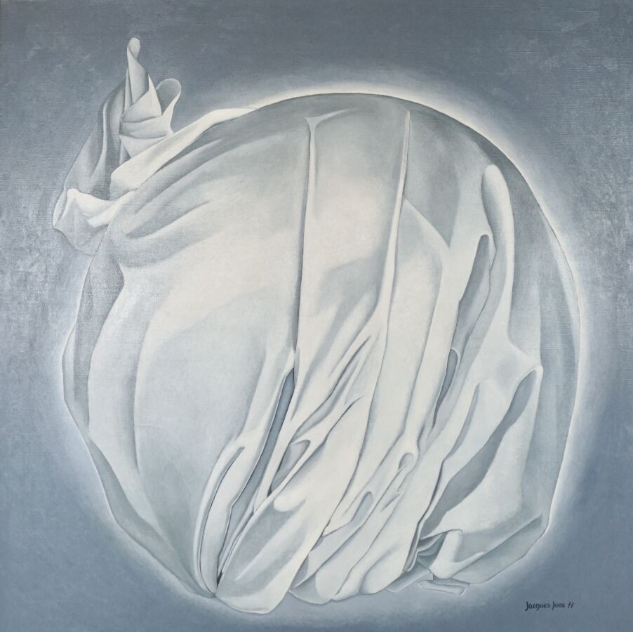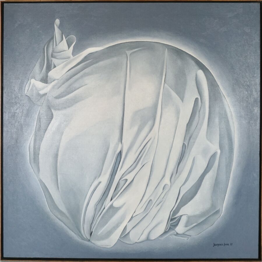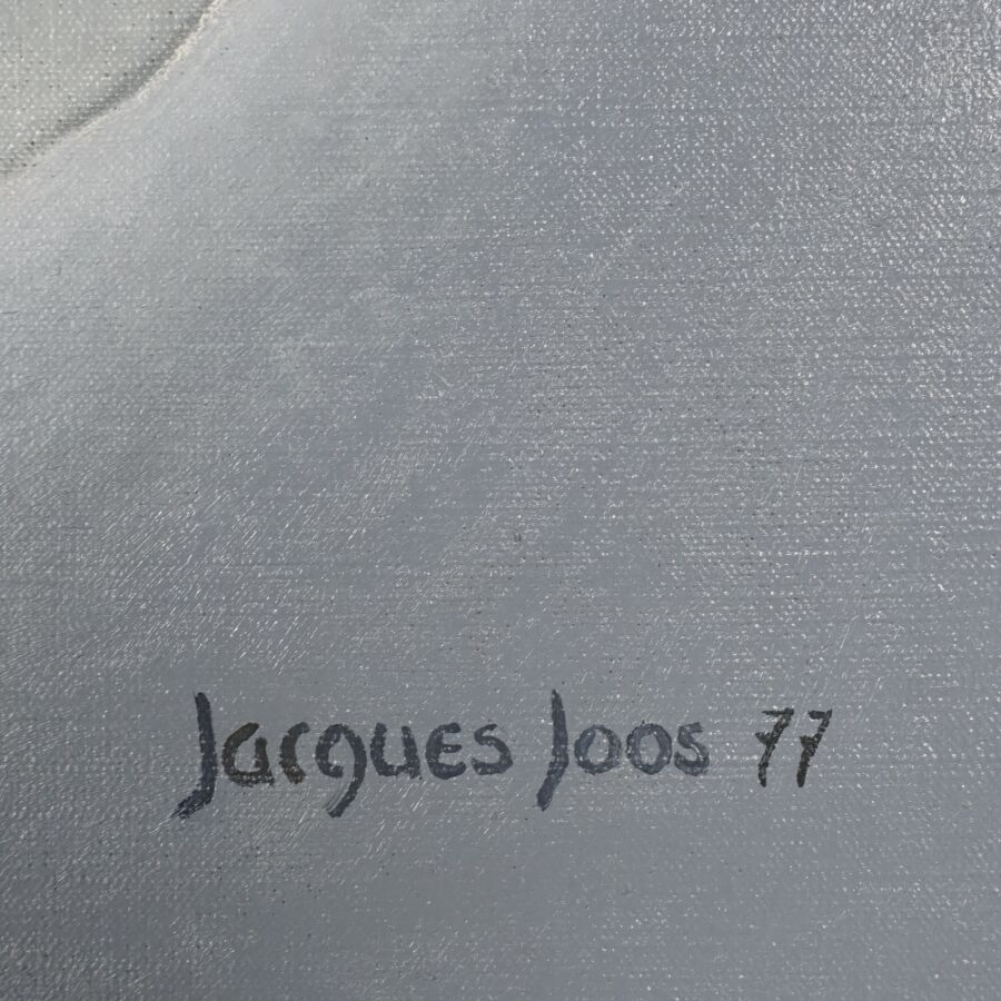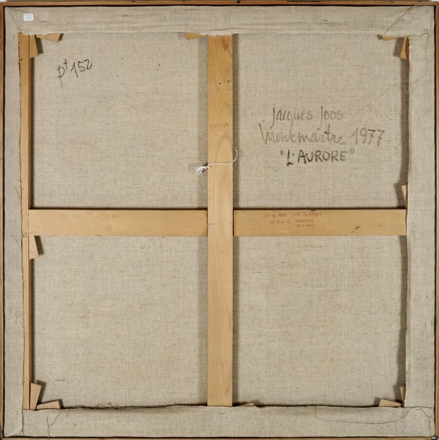 Jacques JOOS (1945-2021), "L'aurore", 1977, huile sur toile, signée et datée en bas à droite, signée, titrée, située et datée au dos, 100 x 100 cm.