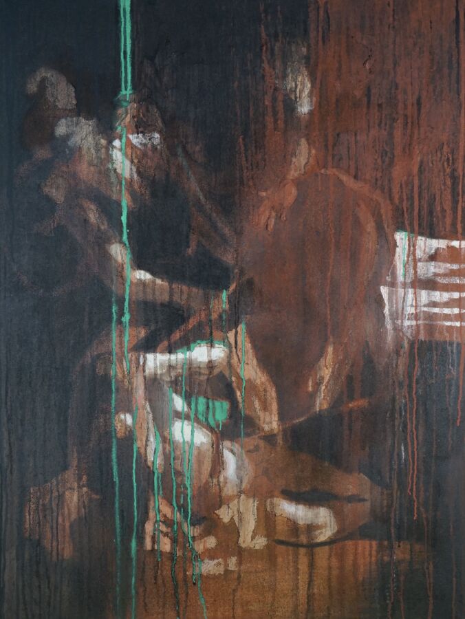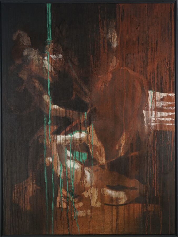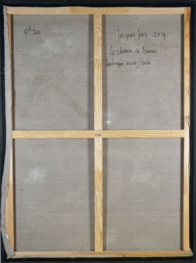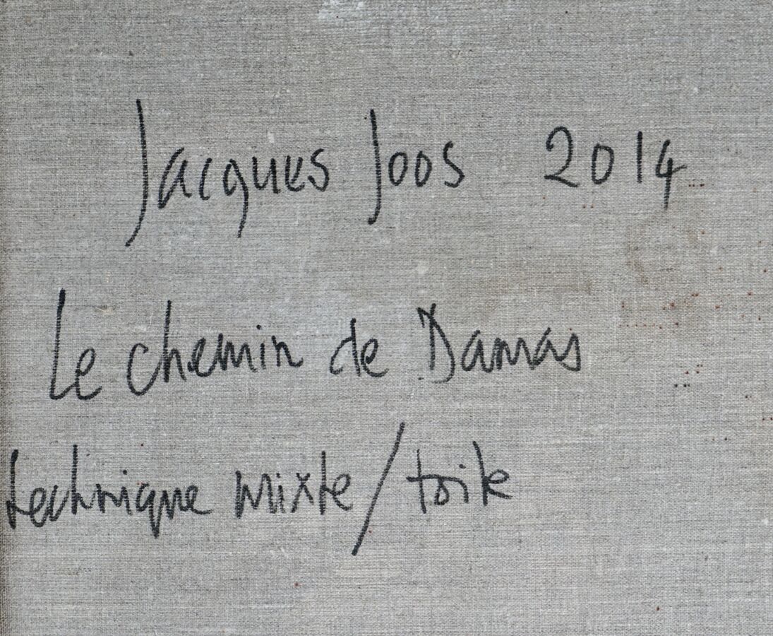 Jacques JOOS (1945-2021), "Le chemin de Damas, La conversion de Saint Paul d'après Le Caravage", 2014, technique mixte sur toile, signée, titrée et datée au dos, 130 x 97 cm.