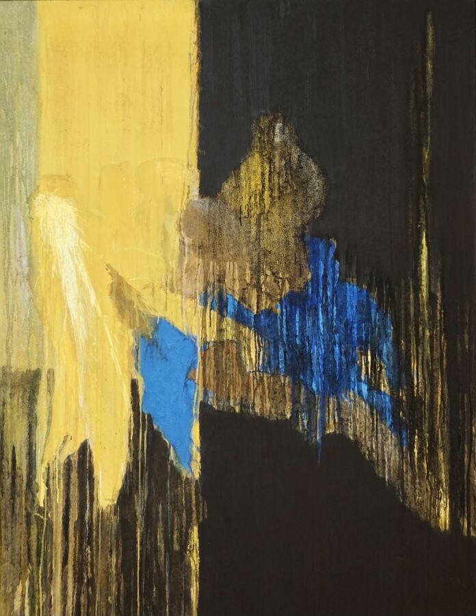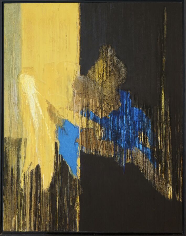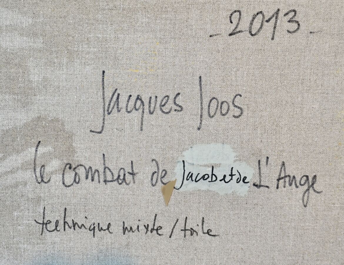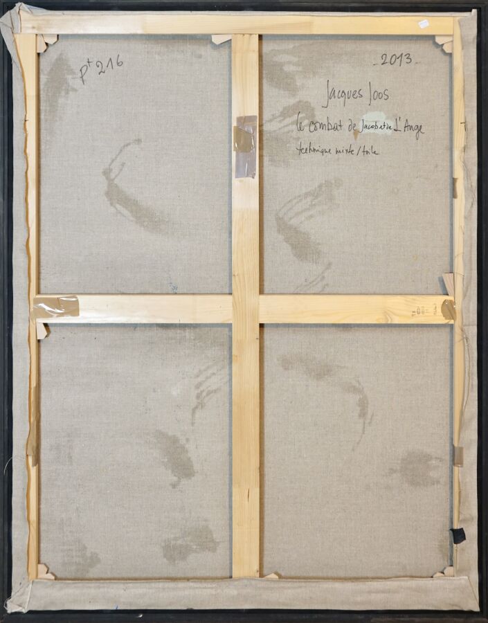 Jacques JOOS (1945-2021), " Le combat de Jacob et l'Ange " 2013, technique mixte sur toile, signée en bas à droite, signée, datée et titrée au dos, 147 x 115 cm.