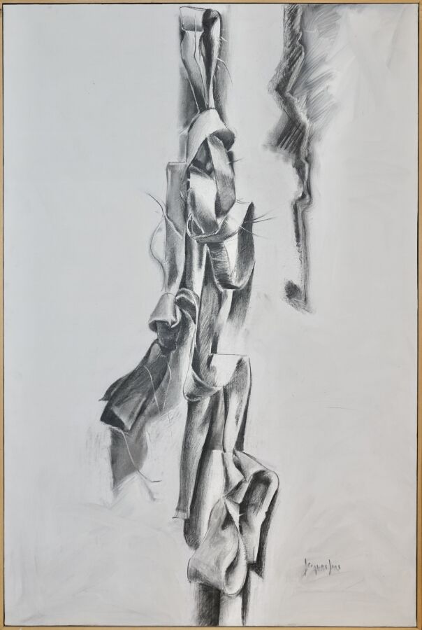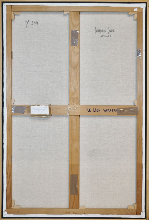 Jacques JOOS (1945-2021), " Le lien varappant ", technique mixte sur toile, signée en bas à droite, signée, titrée et datée au dos, 145 x 97 cm.