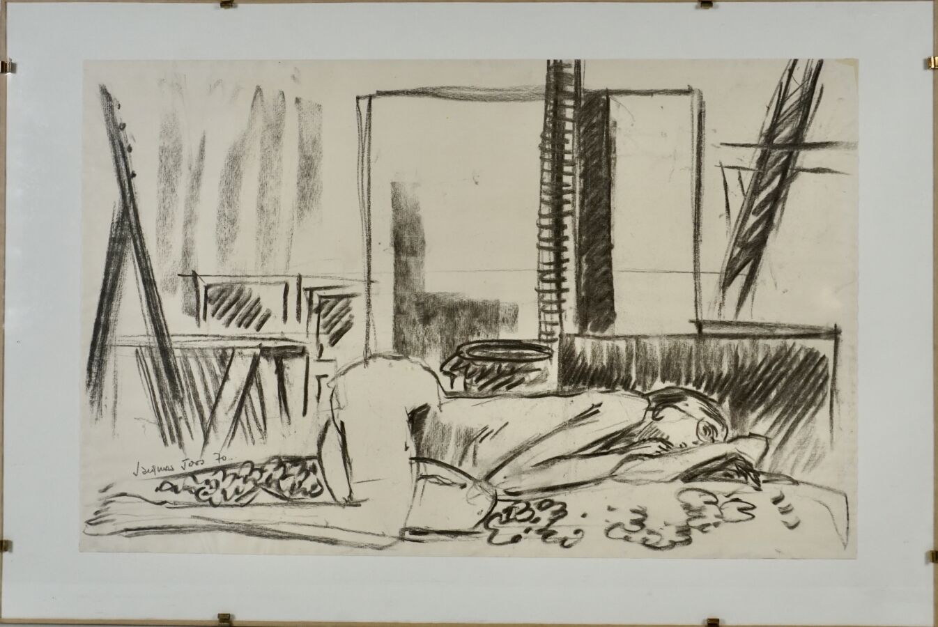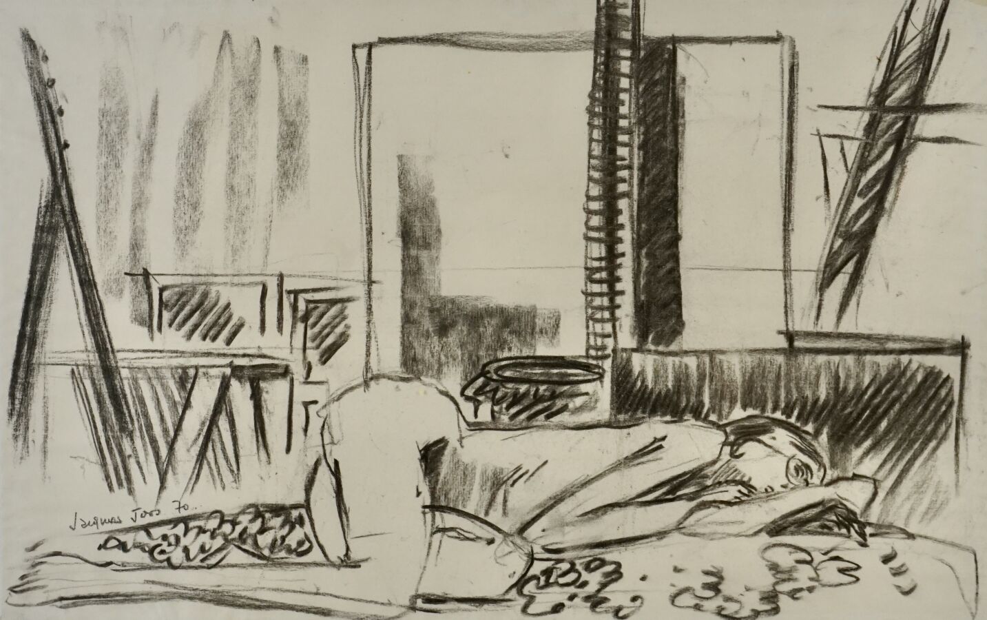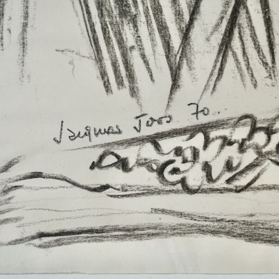 Jacques JOOS (1945-2021), "Le papier", 1970, fusain sur papier, signé et daté en bas à gauche, 31,5 x 49 cm.