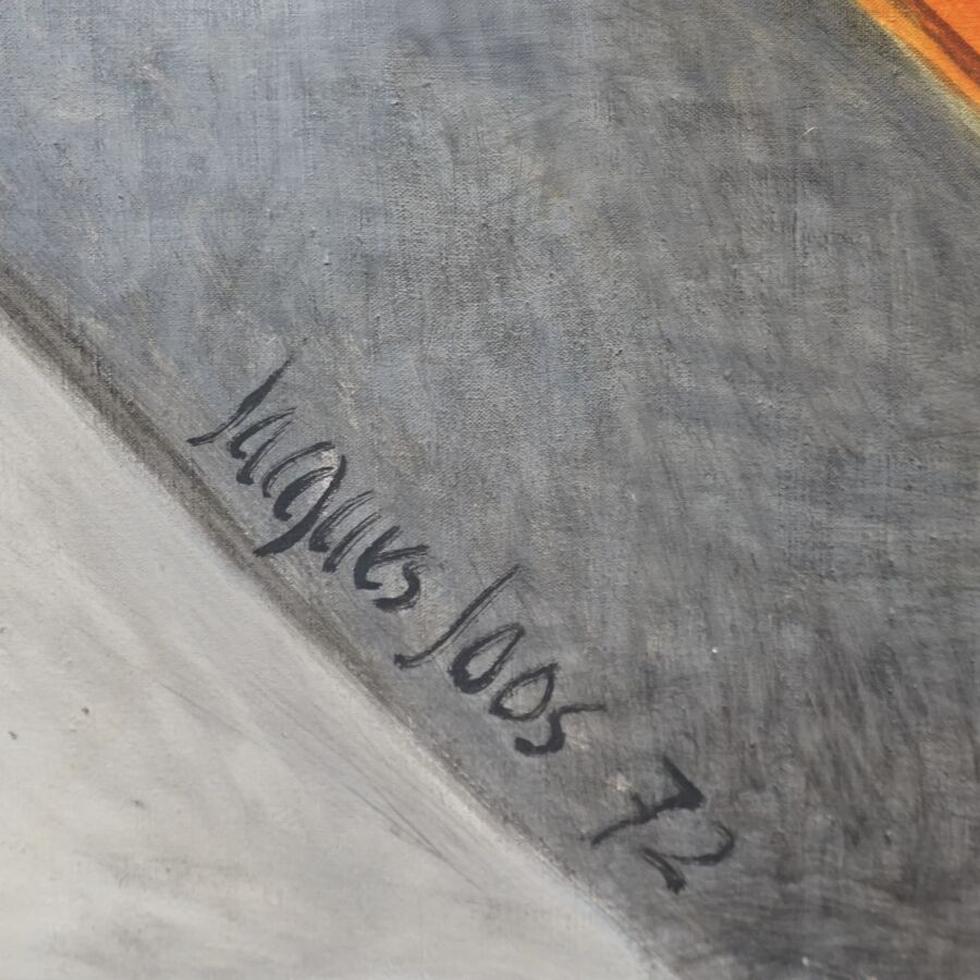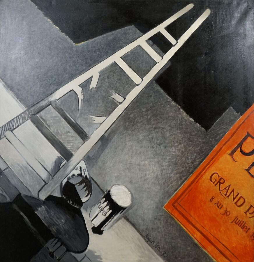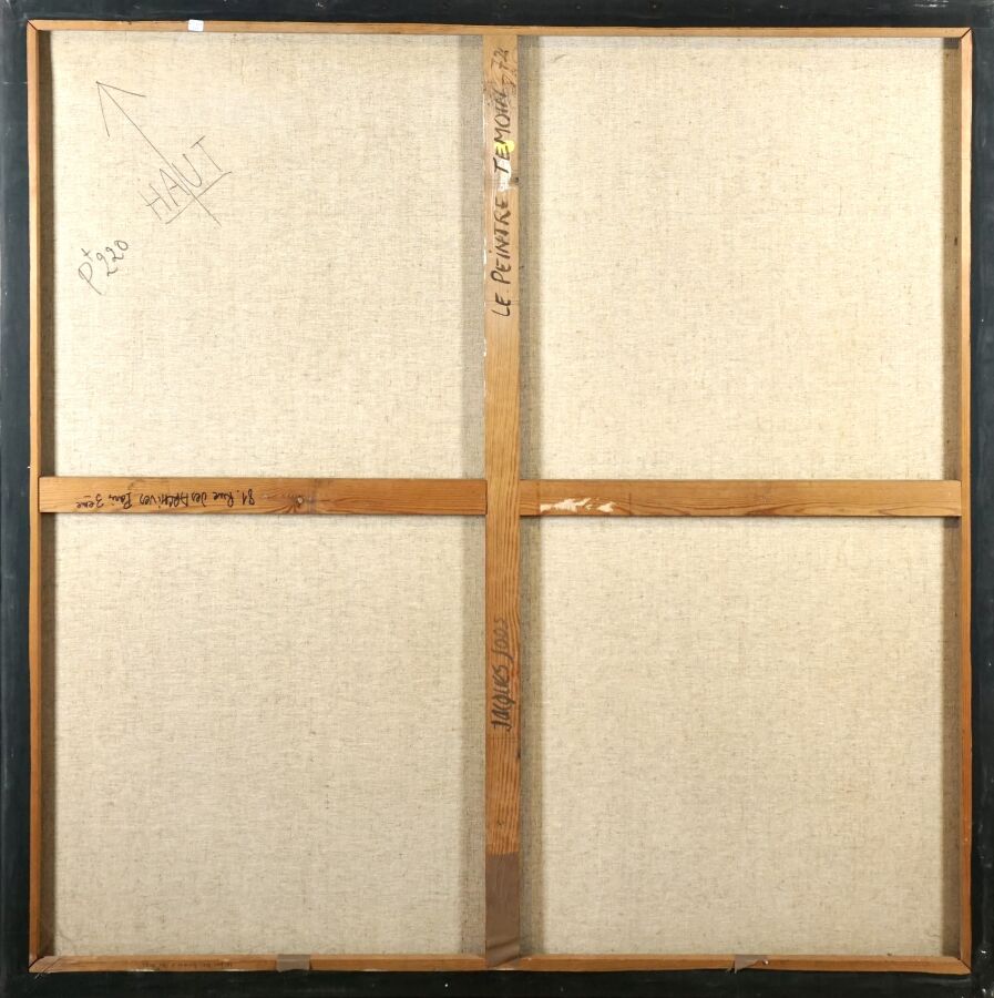 Jacques JOOS (1945-2021), "Le peintre témoin", 1972, huile sur toile, signée et datée en bas à droite, signée, titrée, située et datée au dos, diagonale 219 x 219 cm.