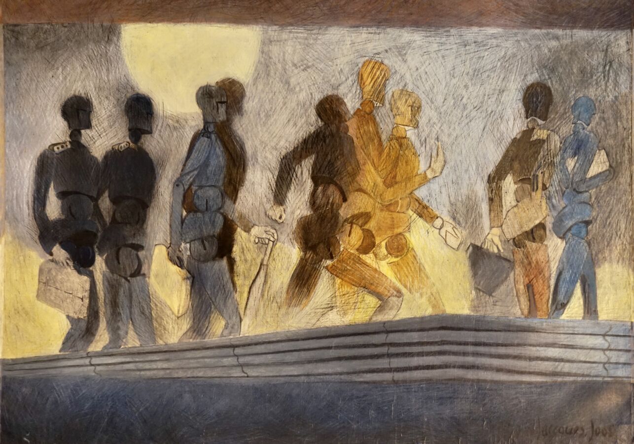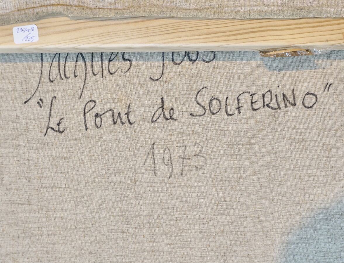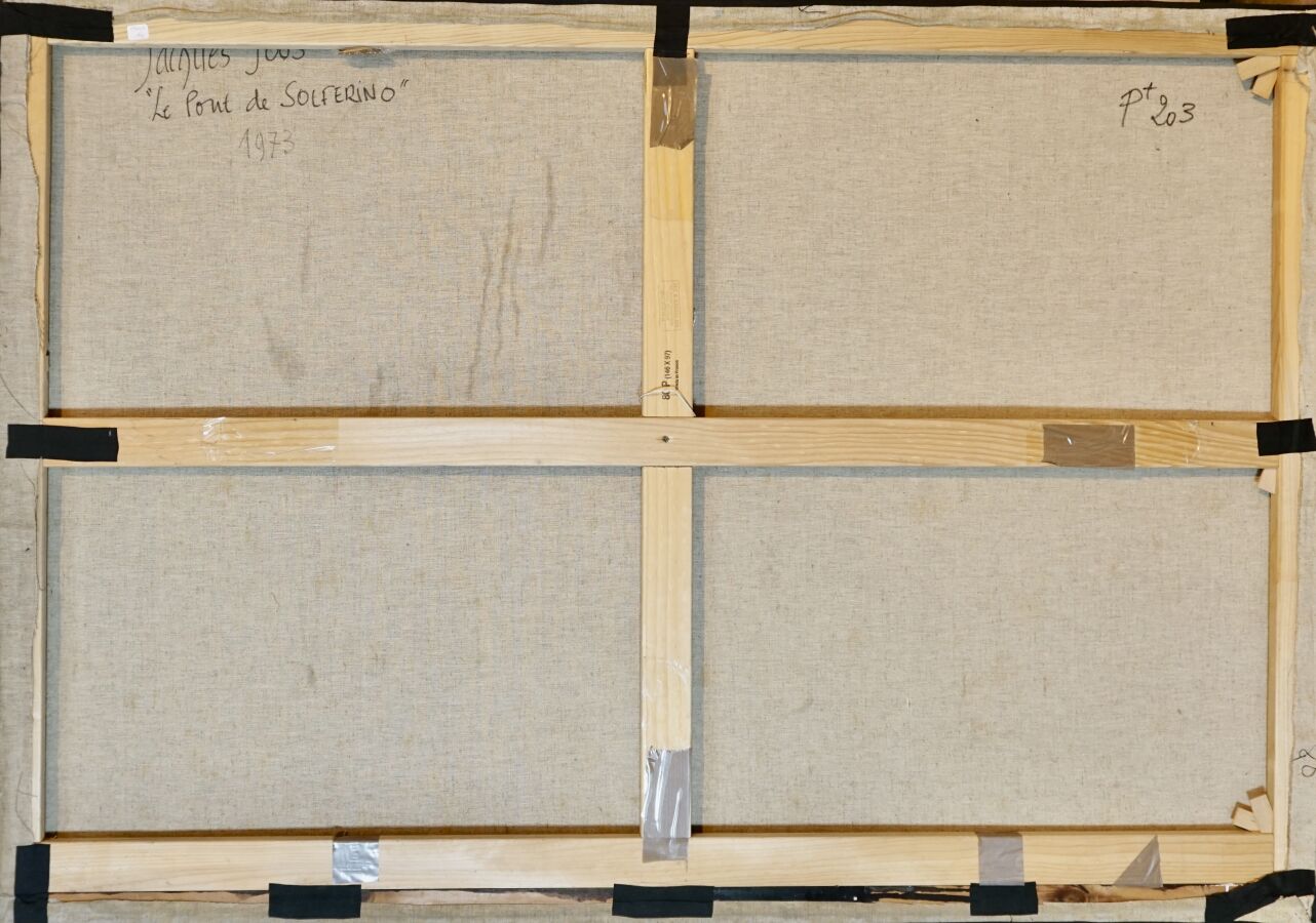 Jacques JOOS (1945-2021), " Le pont de Solferino " 1973, huile sur toile, signée en bas à droite, signée, titrée et datée au dos, 102 x 146 cm.