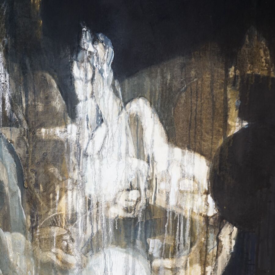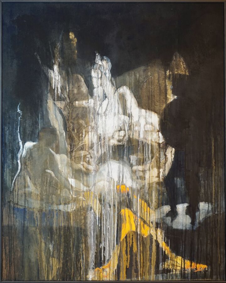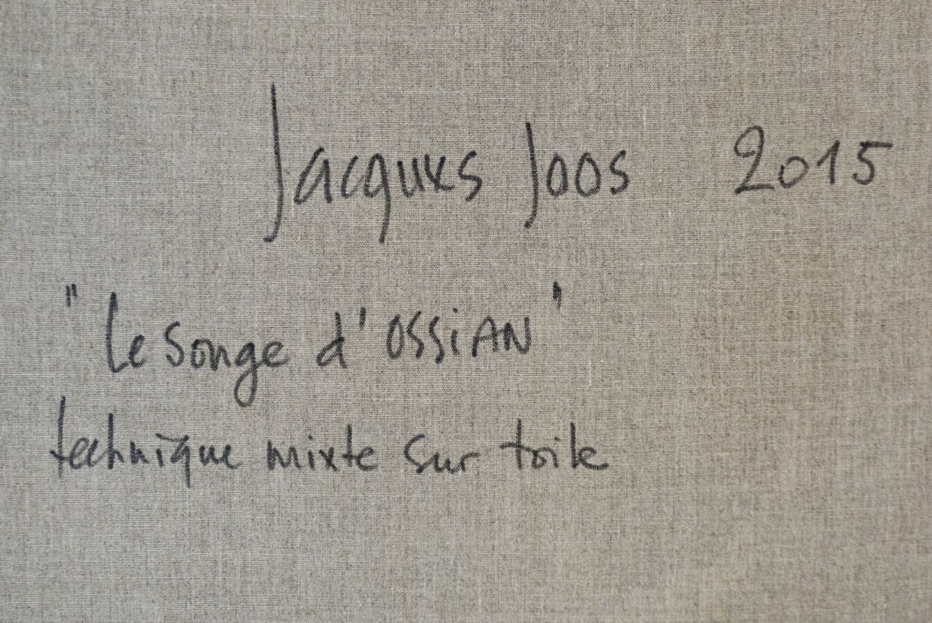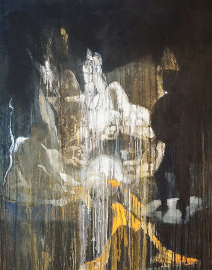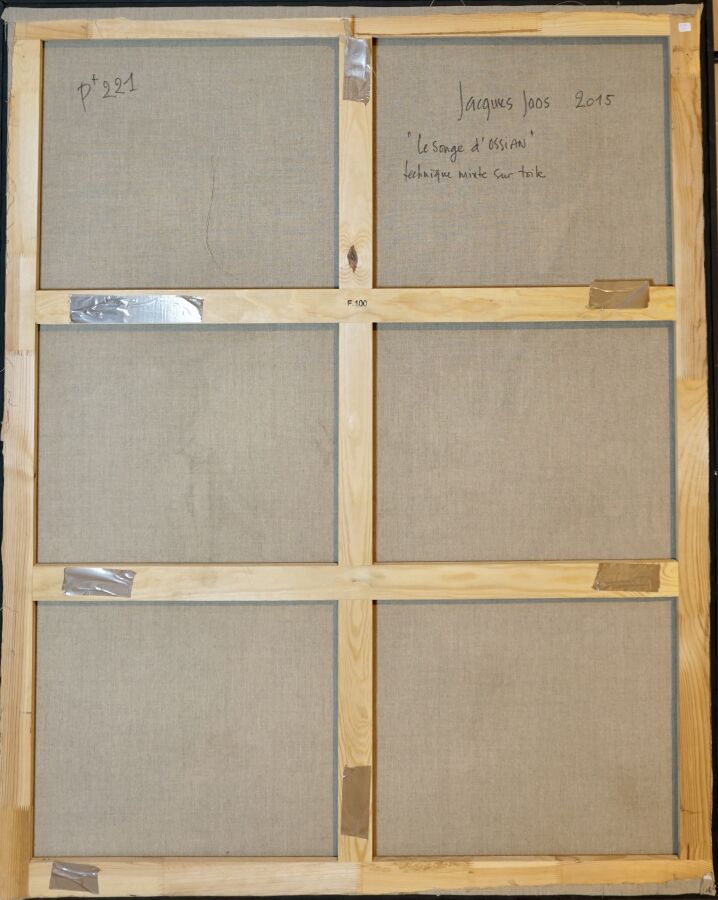 Jacques JOOS (1945-2021), " Le songe d'Ossian " 2015, technique mixte sur toile, signée en bas à droite, signée, titrée et datée au dos, 131 x 162 cm.