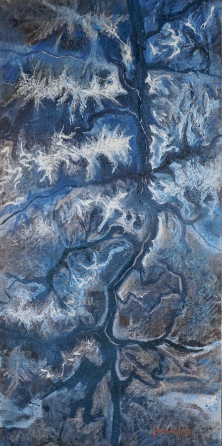 Jacques JOOS (1945-2021), "Lumière d'espace n°15", 2002, technique mixte sur toile, signée en bas à droite, signée, titrée et datée au dos, 100 x 50 cm.