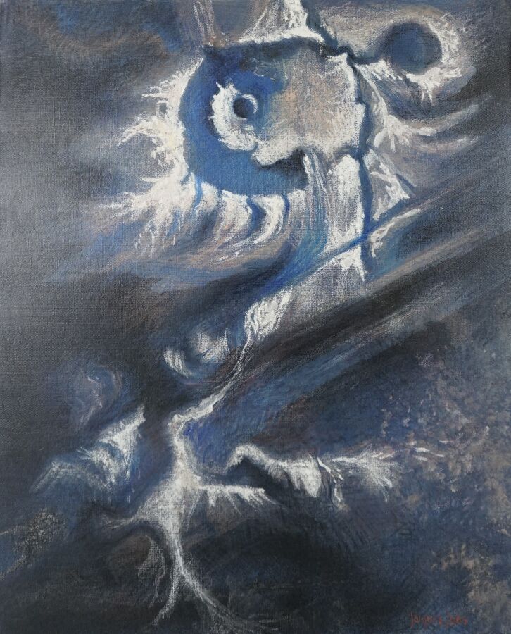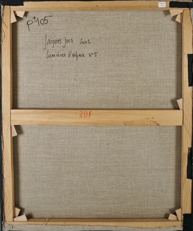Jacques JOOS (1945-2021), "Lumière d'espace n°5", 2002, technique mixte sur toile, signée en bas à droite, signée, titrée et datée au dos, 73 x 60 cm.