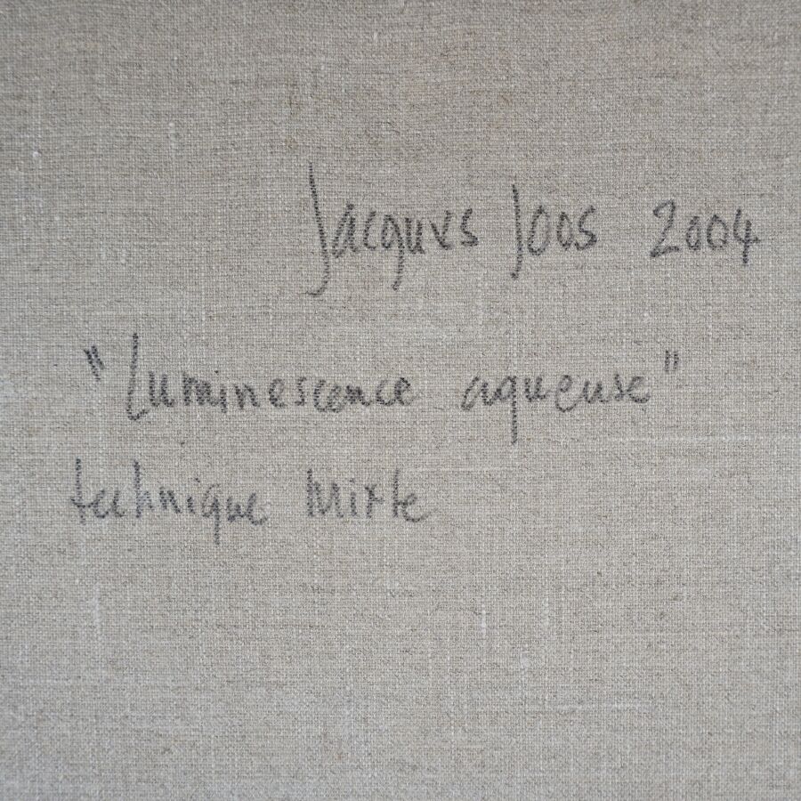 Jacques JOOS (1945-2021), "Luminescence aqueuse", 2004, technique mixte sur toile, signée en bas à droite, signée, titrée et datée au dos, 92 x 65 cm.