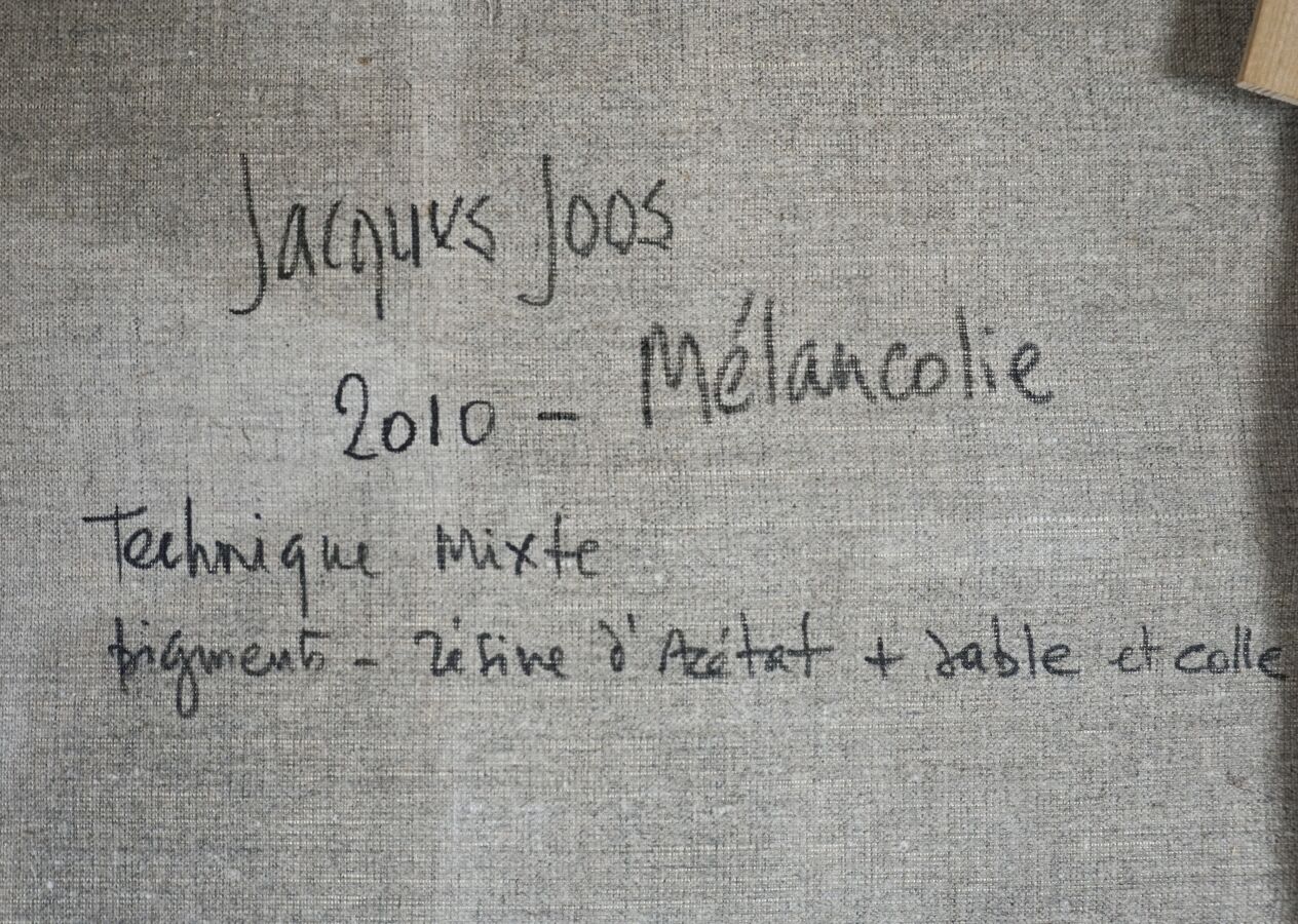 Jacques JOOS (1945-2021), "Mélancolie", 2010, technique mixte sur toile, signée, titrée et datée au dos, 116 x 89 cm.