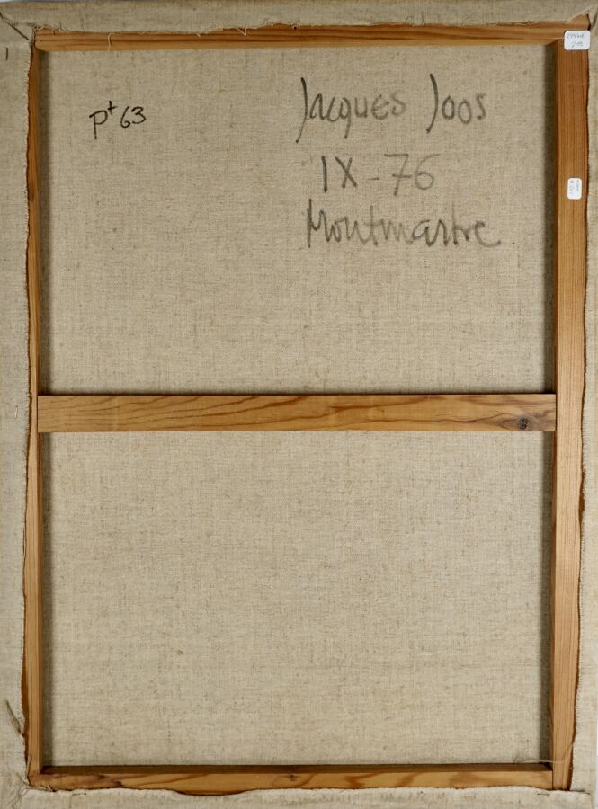 Jacques JOOS (1945-2021), "Montmartre" 1976, huile sur toile, signée en bas à droite, signée, titrée et datée au dos 73 x 52 cm (à vue).