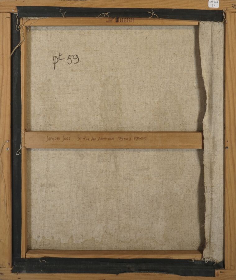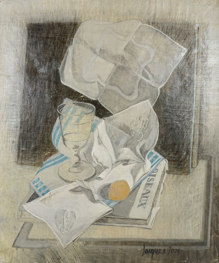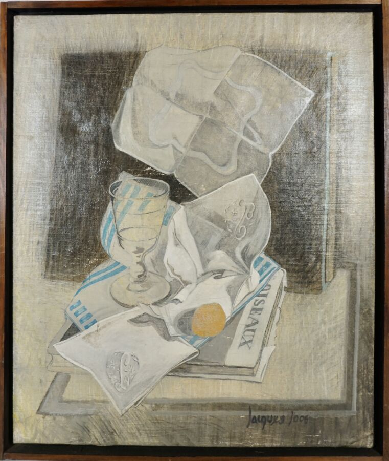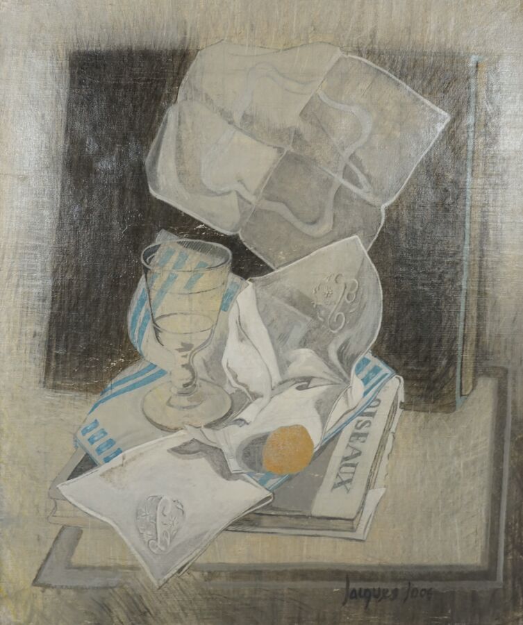 Jacques JOOS (1945-2021), "Nature morte au verre", huile sur toile, signée en bas à droite et signée au dos, 55 x 46 cm, (manques).