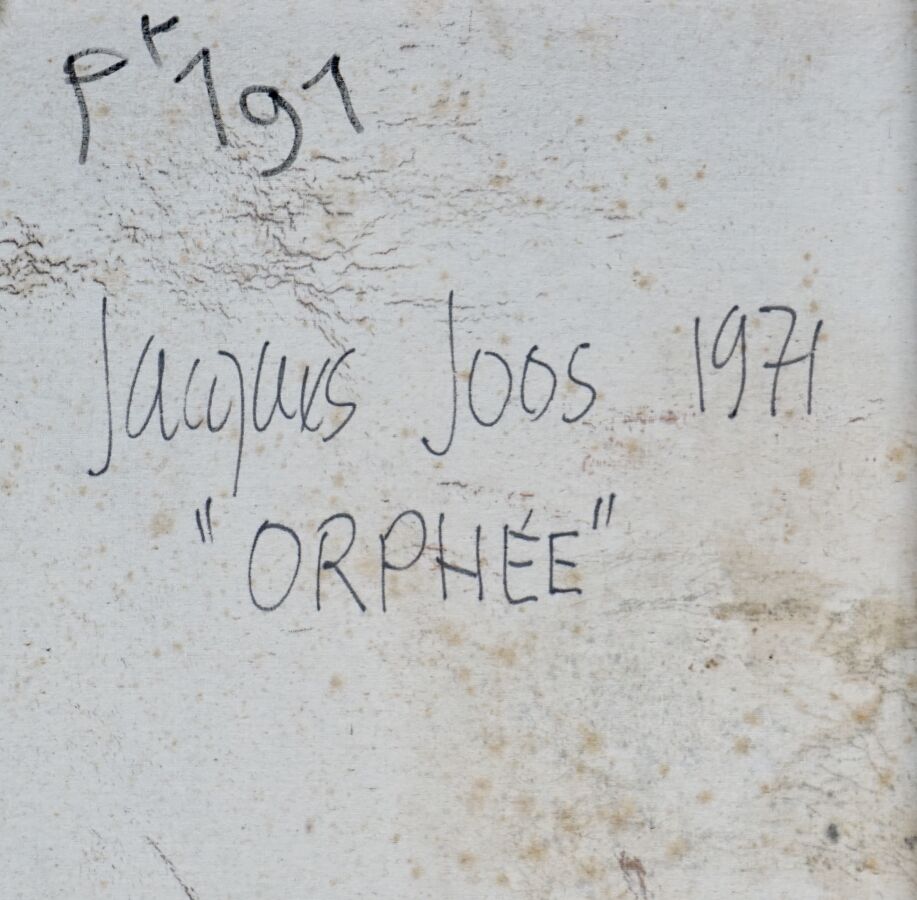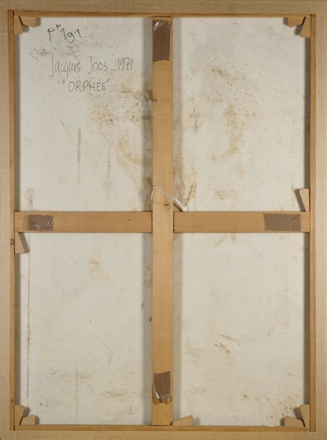 Jacques JOOS (1945-2021), "Orphée", 1971, technique mixte sur toile, signée en bas à gauche, contresignée, titrée et datée au dos, 146.5 x 114 cm.