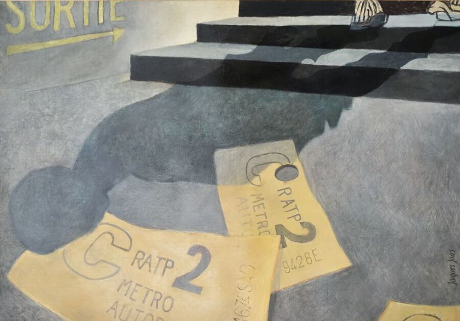 Jacques JOOS (1945-2021), « Paris Métro », huile sur toile, signée en bas à gauche, signée et titrée au dos, 97 x 146 cm, (toile détendue).