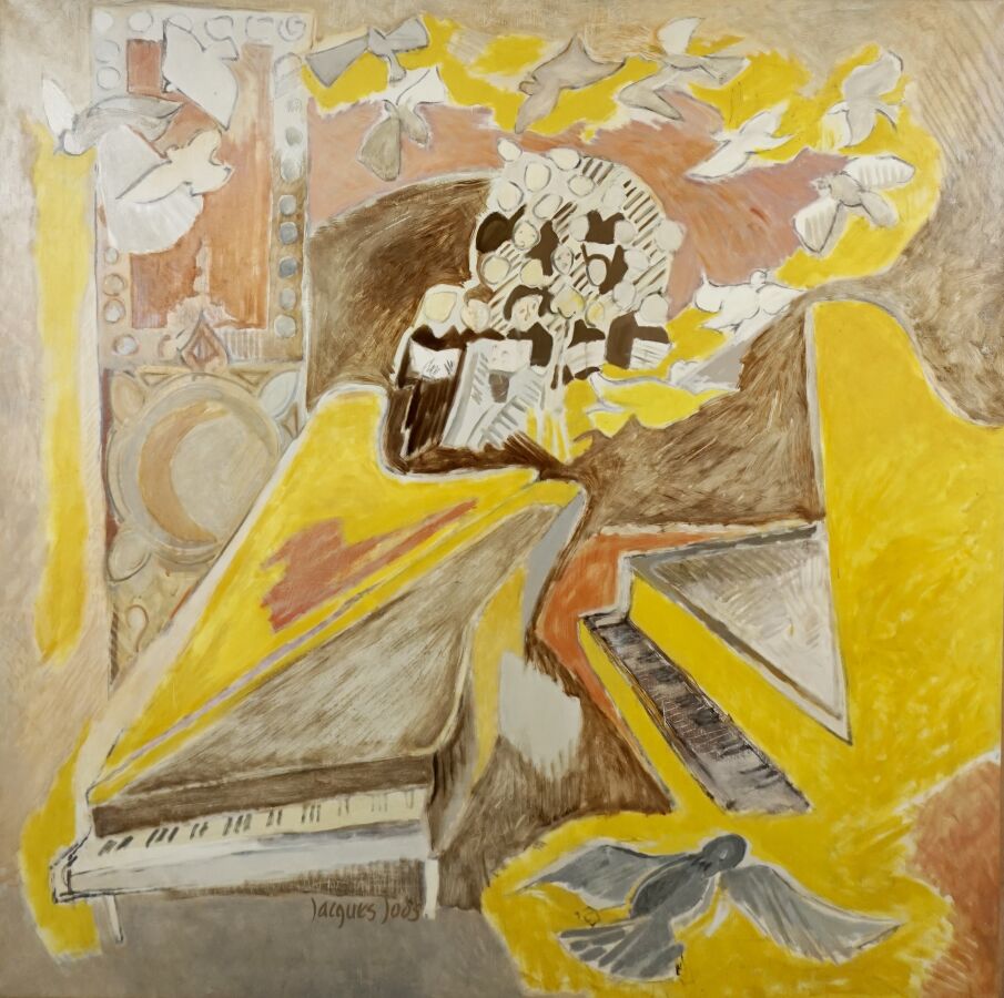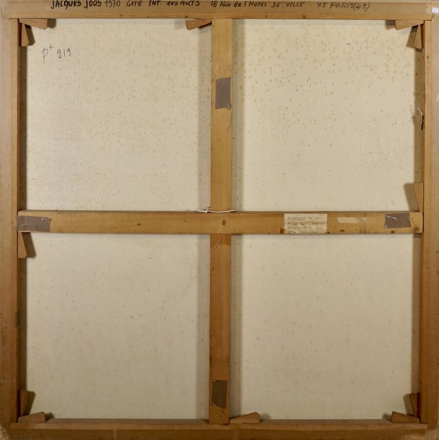 Jacques JOOS (1945-2021), "Passion", 1970, huile sur toile, signée au centre à gauche, signée, titrée, située et datée au dos, 150 x 150 cm.