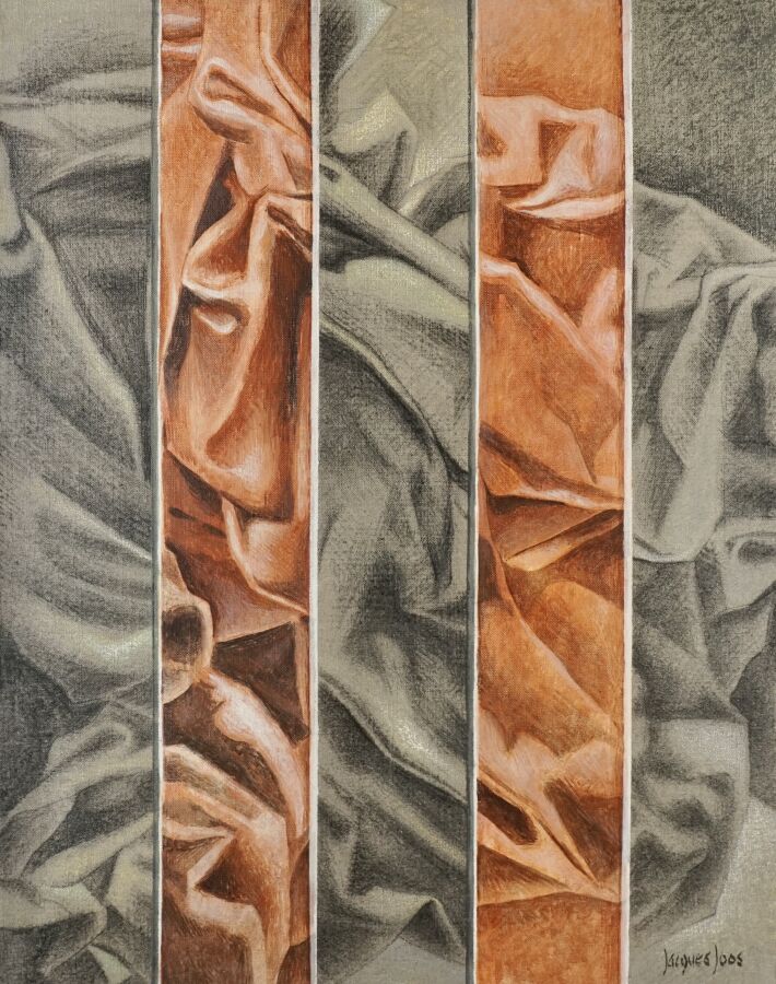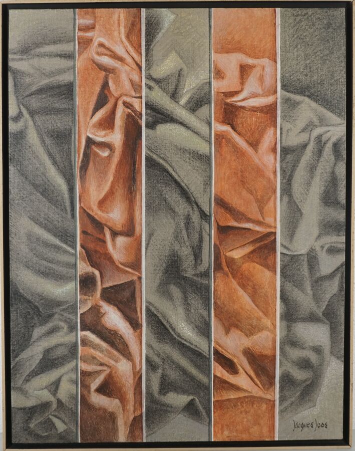 Jacques JOOS (1945-2021), "Plis contre plis", 1998, technique mixte sur toile, signée en bas à droite, signée, titrée et datée au dos, 65 x 50 cm.