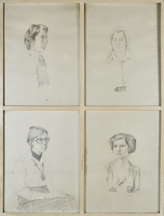 Jacques JOOS (1945-2021), "Polyptique de portraits", crayon sur papier, signé, titré au dos, 100 x 75 cm.