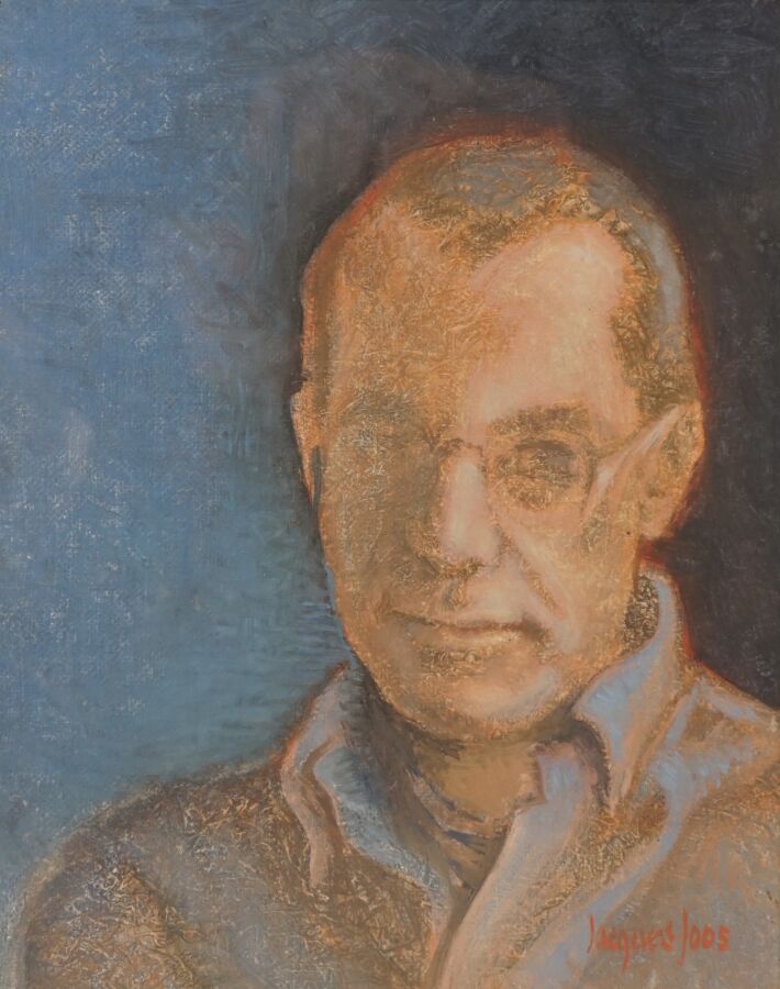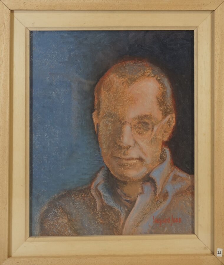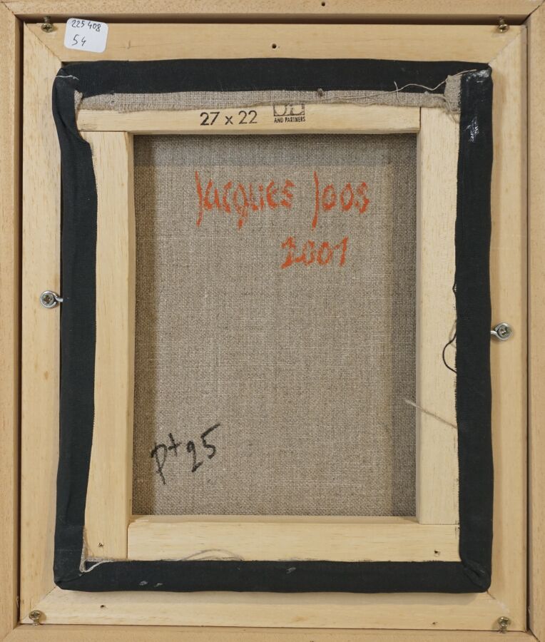Jacques JOOS (1945-2021), "Portrait présumé de Christian Alberti", 2001, technique mixte sur toile, signée en bas à droite, signée, titrée et datée au dos, 27 x 22,5 cm.