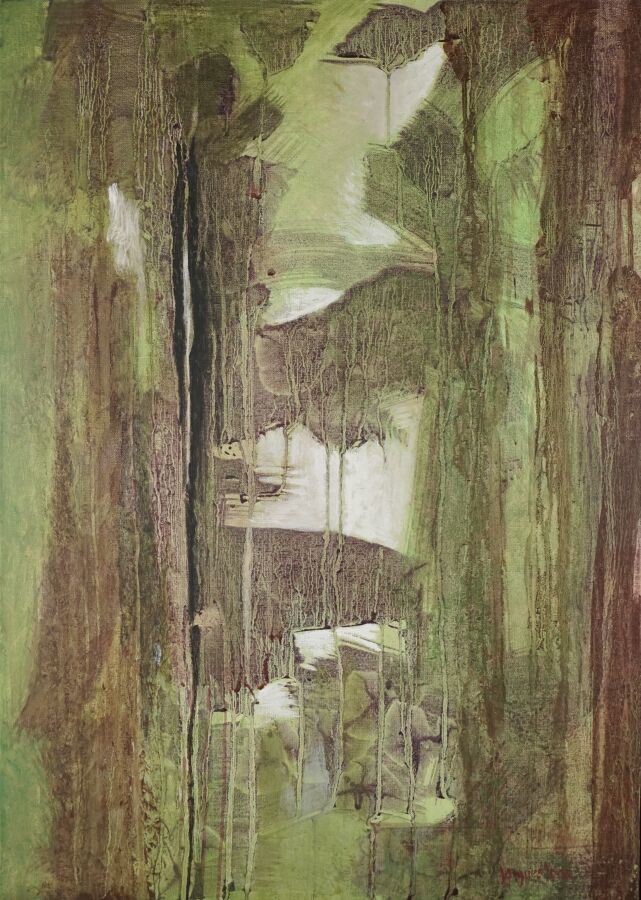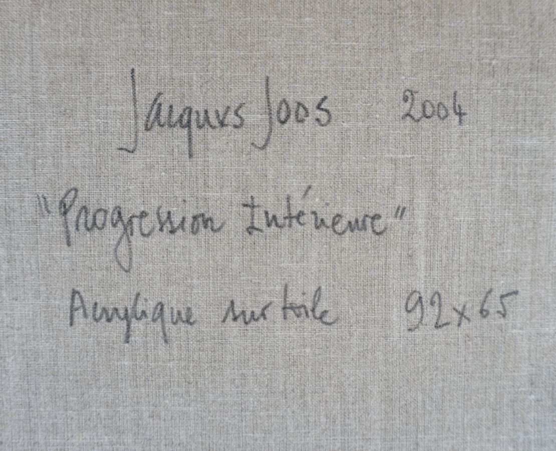 Jacques JOOS (1945-2021), "Progression intérieure", 2004, technique mixte sur toile, signée en bas à droite, signée, titrée et datée au dos, 92 x 65 cm.