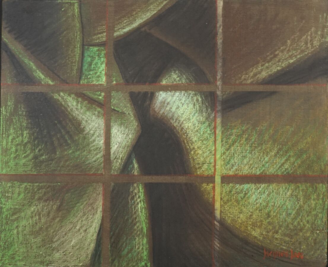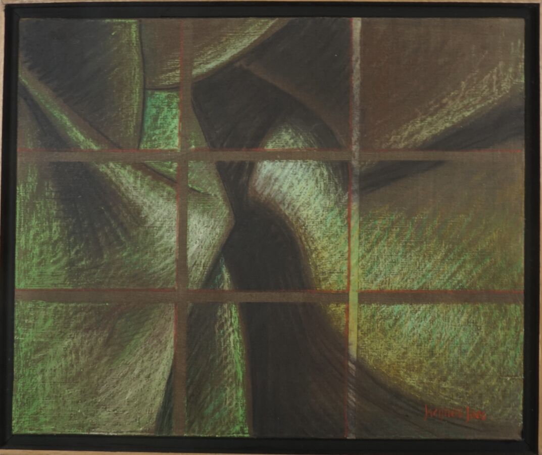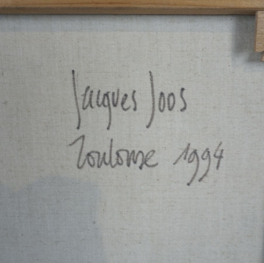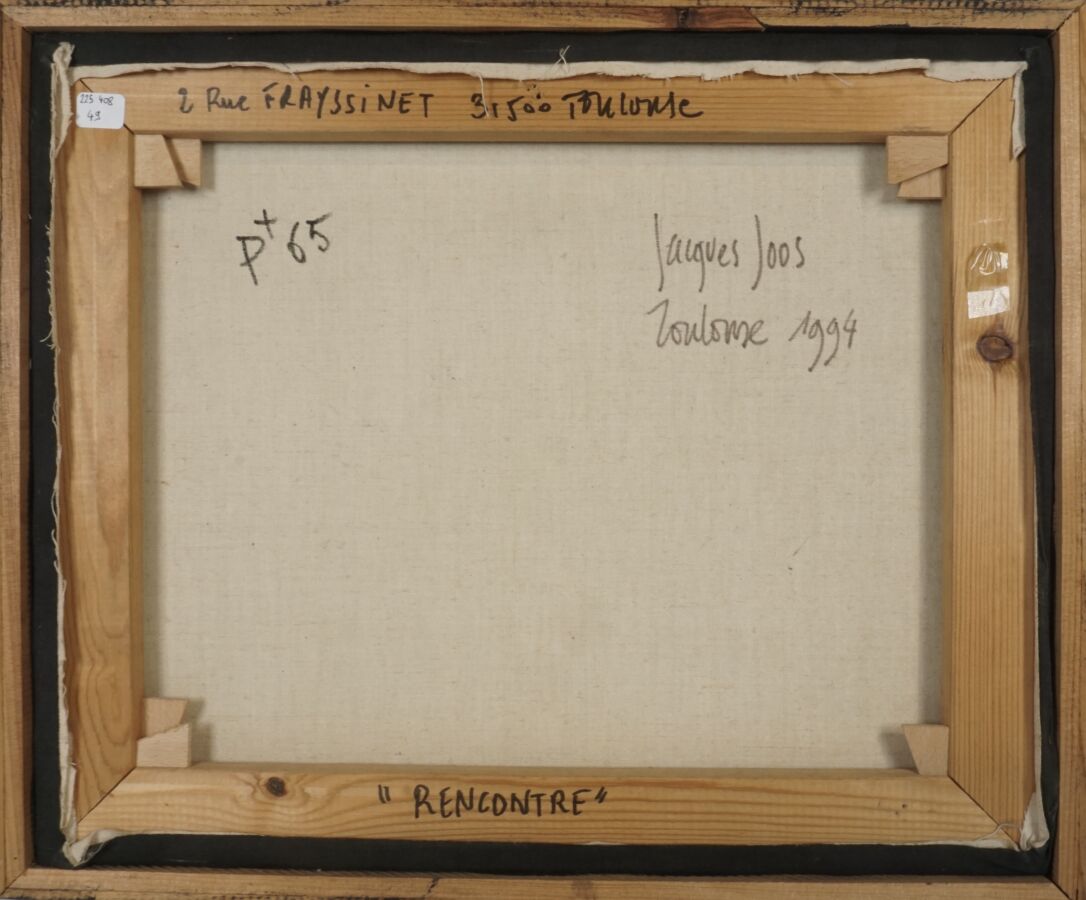 Jacques JOOS (1945-2021), "Rencontre", 1994, technique mixte sur toile, signée, datée, située et titrée au dos, 38 x 46 cm.