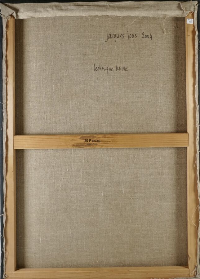 Jacques JOOS (1945-2021), "Sans titre", 2004, technique mixte sur toile, signée en bas à droite, signée et datée au dos, 92 x 65 cm.