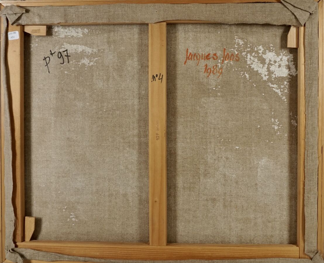 Jacques JOOS (1945-2021), "Sans titre n°4", 1989, technique mixte sur toile, signée en bas à droite, signée et datée au dos, 50 x 61 cm.
