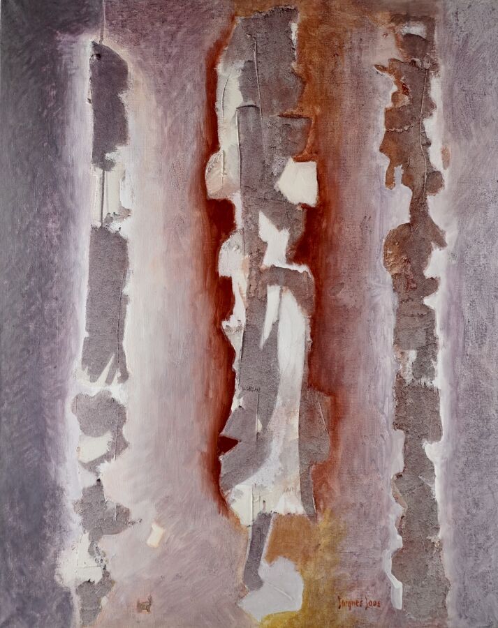 Jacques JOOS (1945-2021), "Silhouettes", 2005, technique mixte sur toile, signée en bas à droite, signée, titrée et datée au dos, 92 x 73 cm.