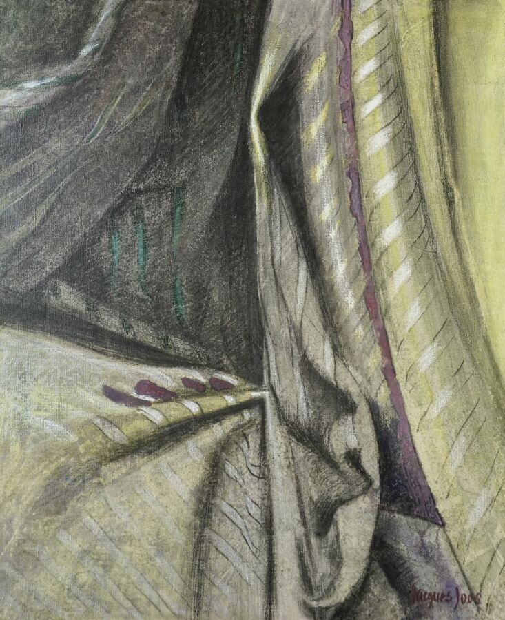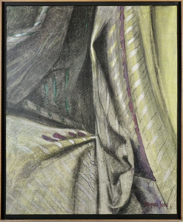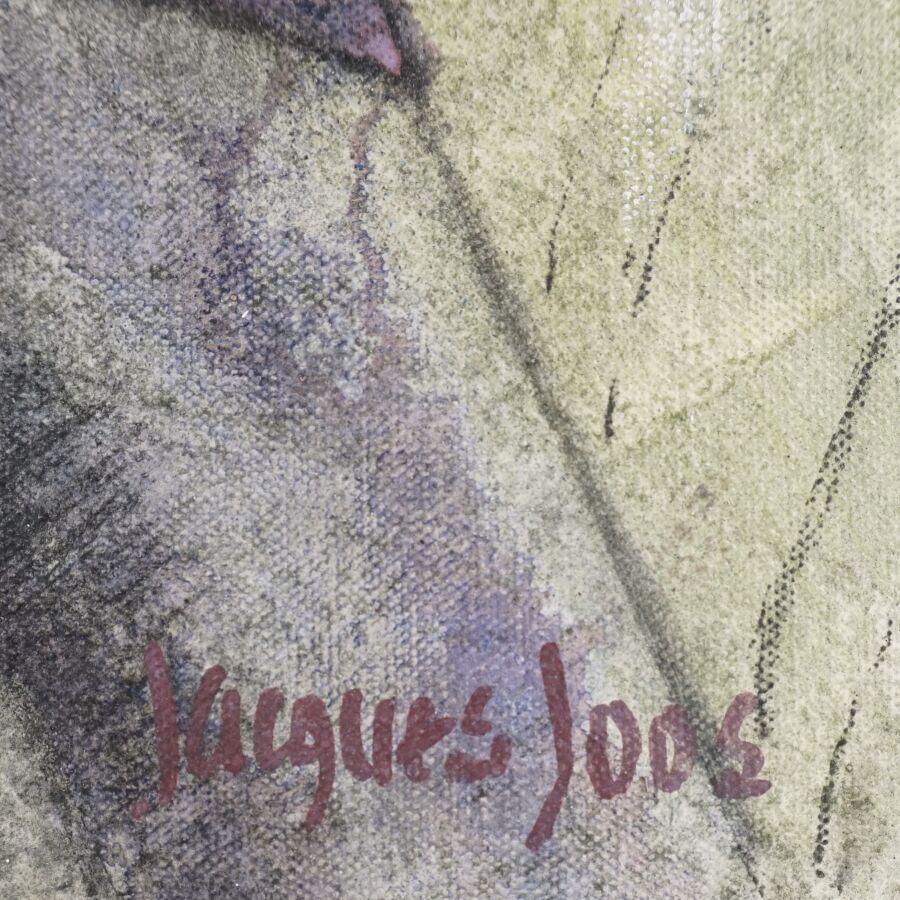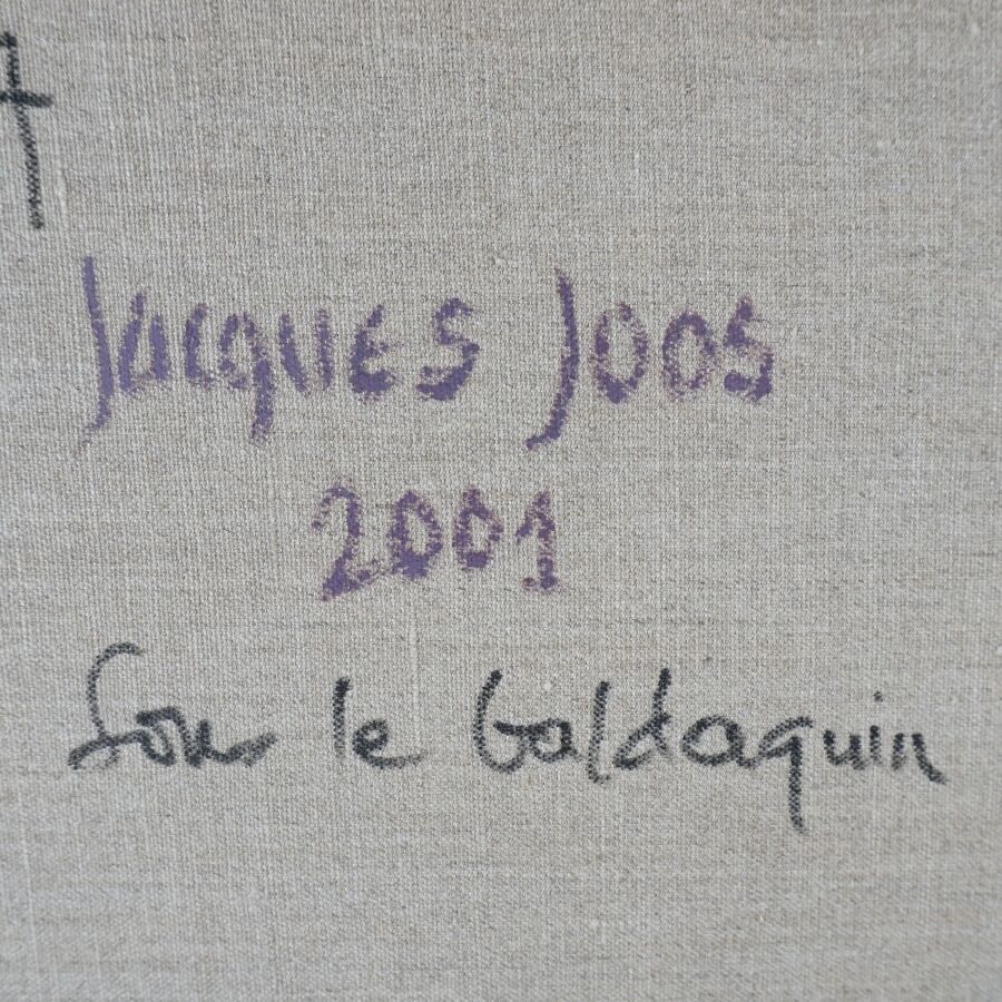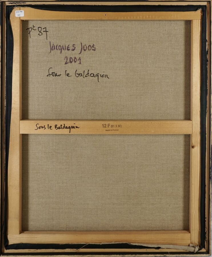 Jacques JOOS (1945-2021), "Sous le baldaquin", 2001, technique mixte sur toile, signée en bas à droite, signée, titrée et datée au dos, 61 x 50 cm.