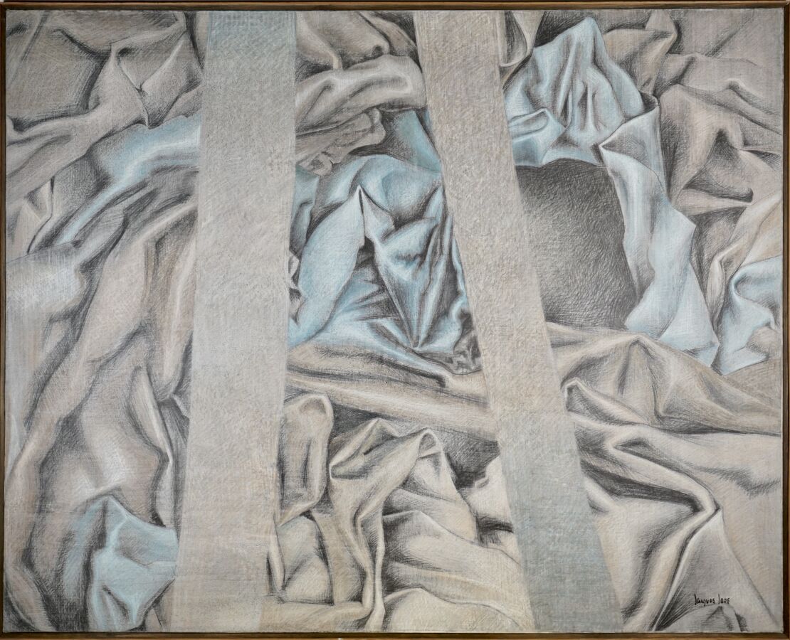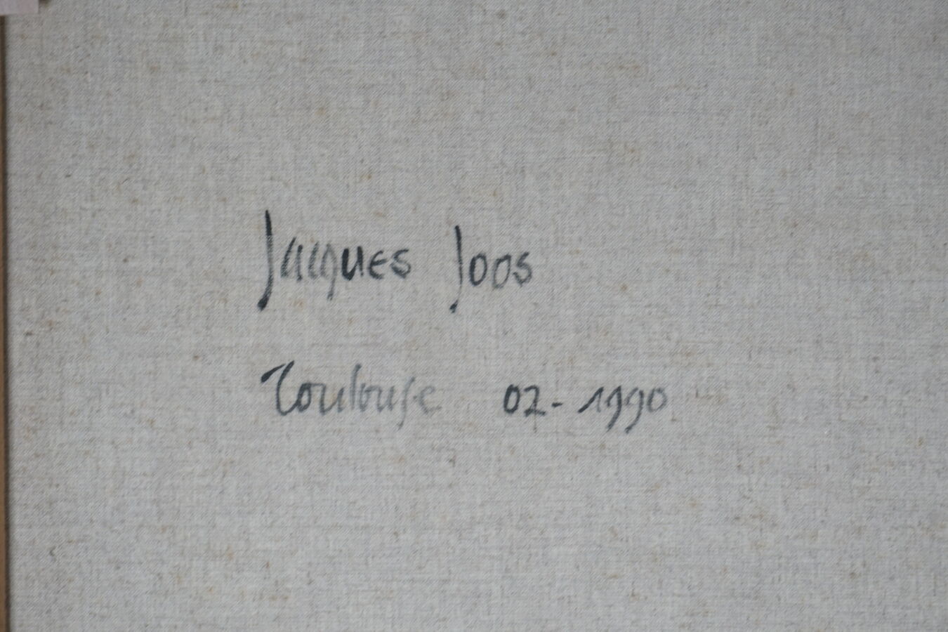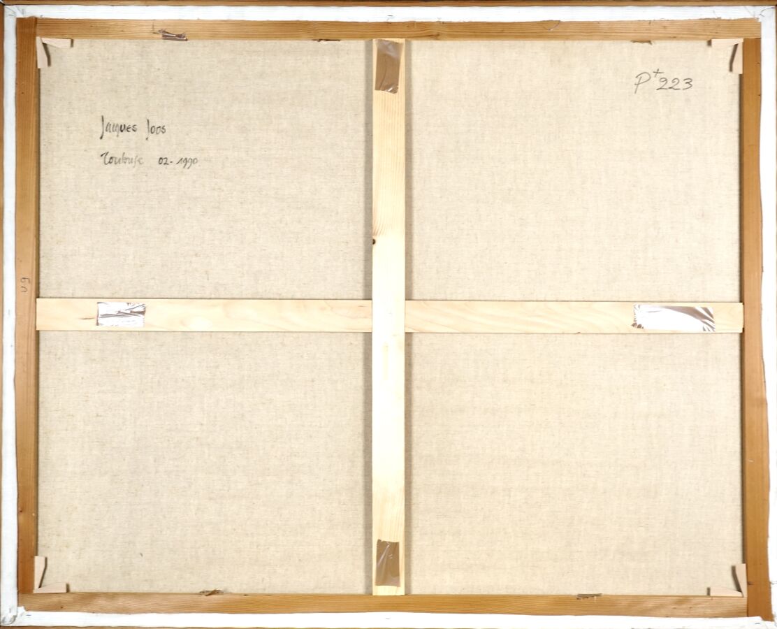 Jacques JOOS (1945-2021), "Toulouse", 02.1990, technique mixte sur toile, signée en bas à droite, contresignée, située et datée au dos, 129.8 x 161.7 cm.