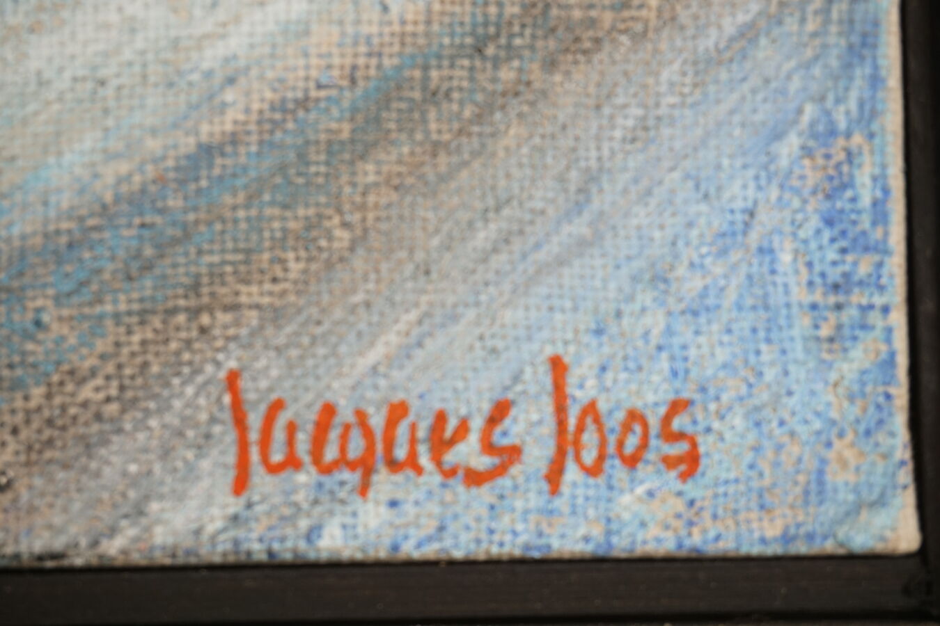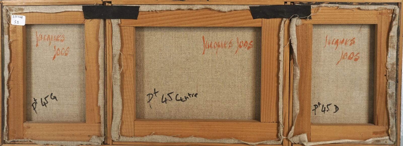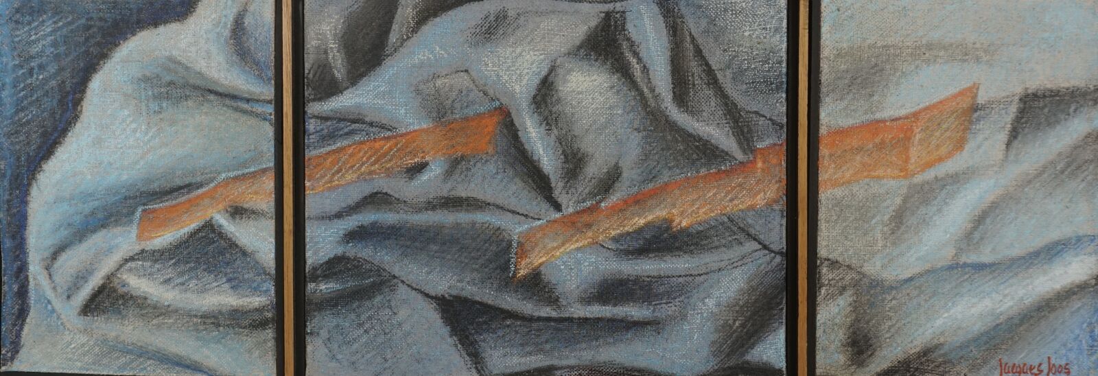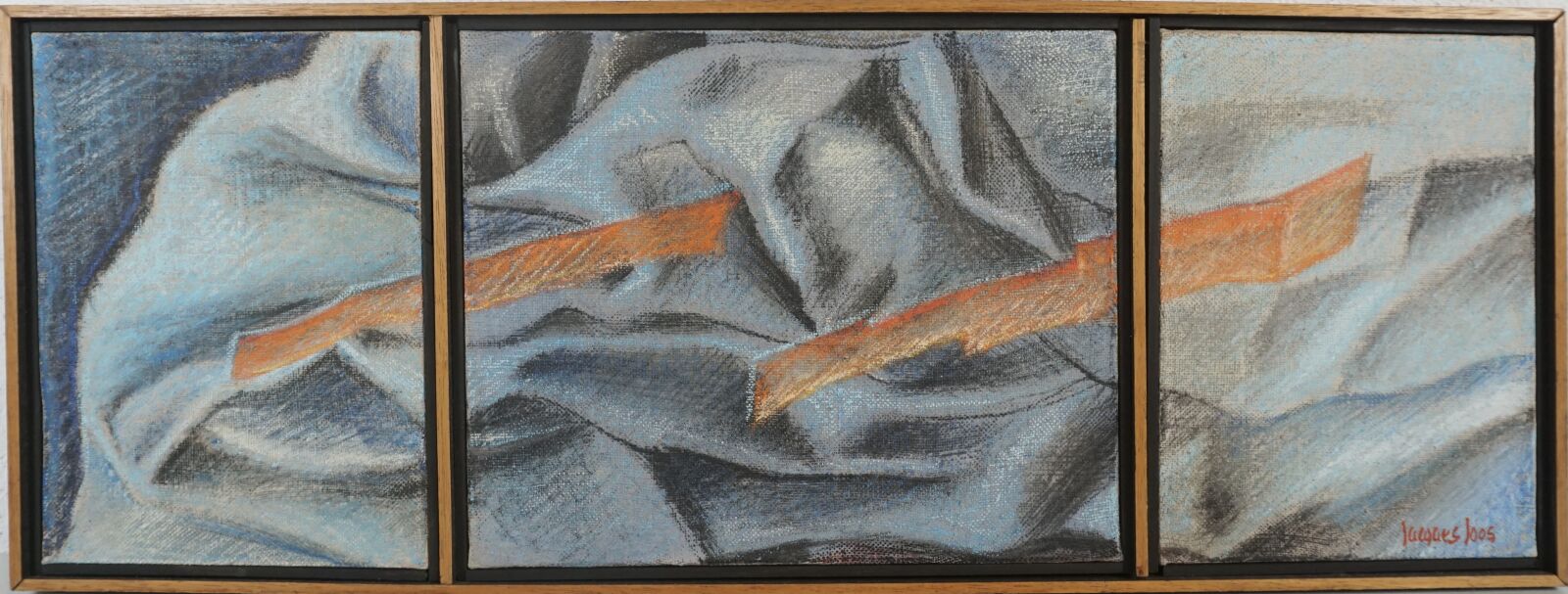 Jacques JOOS (1945-2021), "Triptyque bleu et orange", technique mixte sur toile, signée en bas à droite, signée au dos, encadrée, 24 x 64,5 cm.